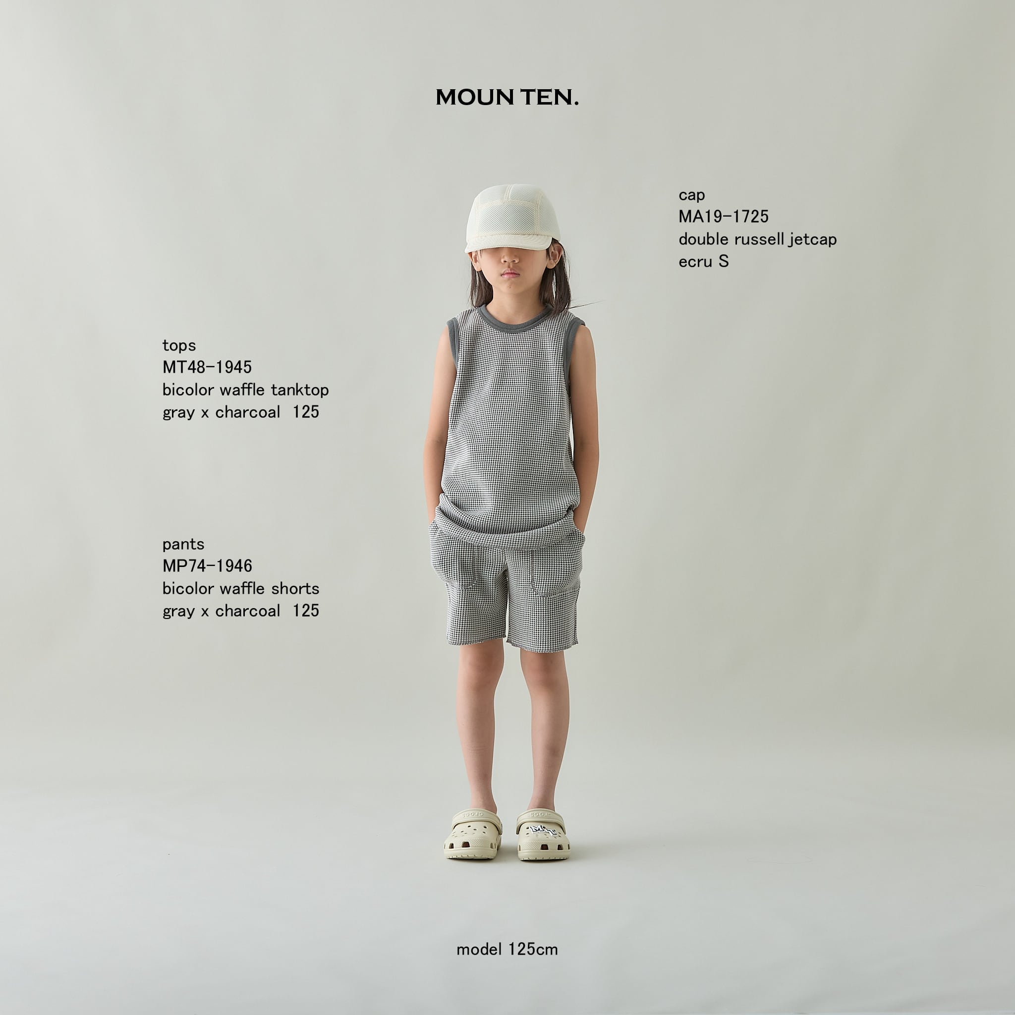MOUN TEN.(マウンテン)/ bicolor waffle shorts / gray x charcoal / 95,110,125,140