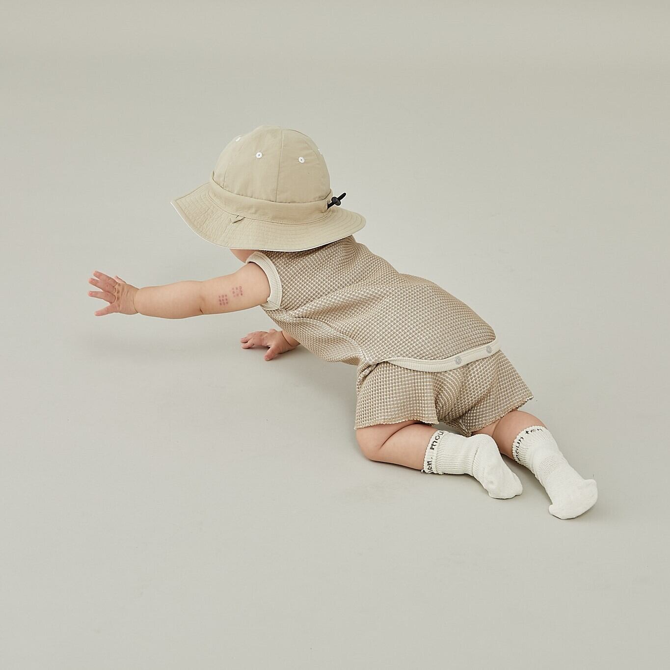 MOUN TEN.(マウンテン)/ bicolor waffle shorts(for baby) / gray x charcoal / 65-80,80-95