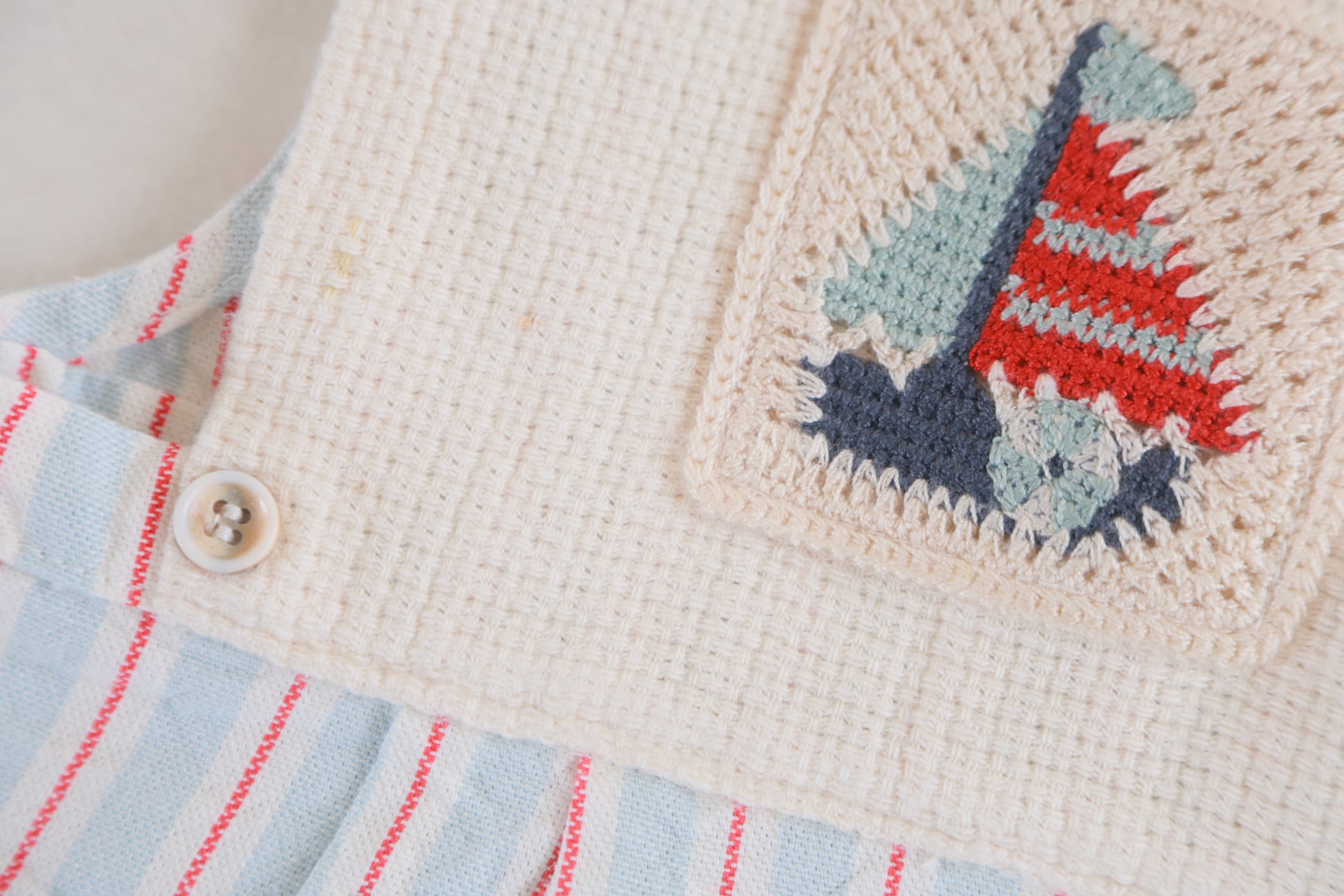 手編みのヨットの刺繍が可愛らしいデザインです。
