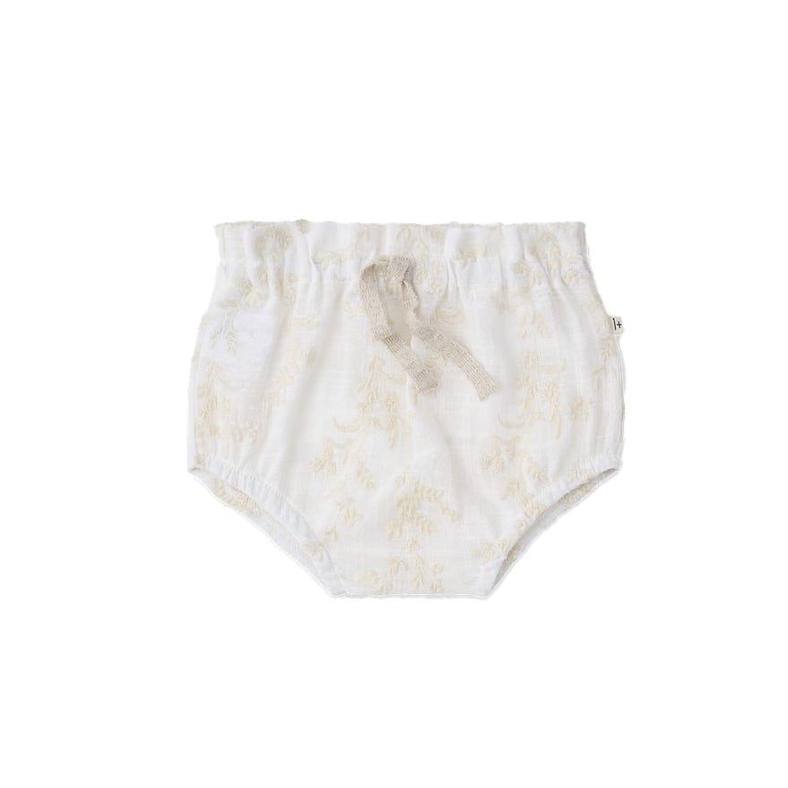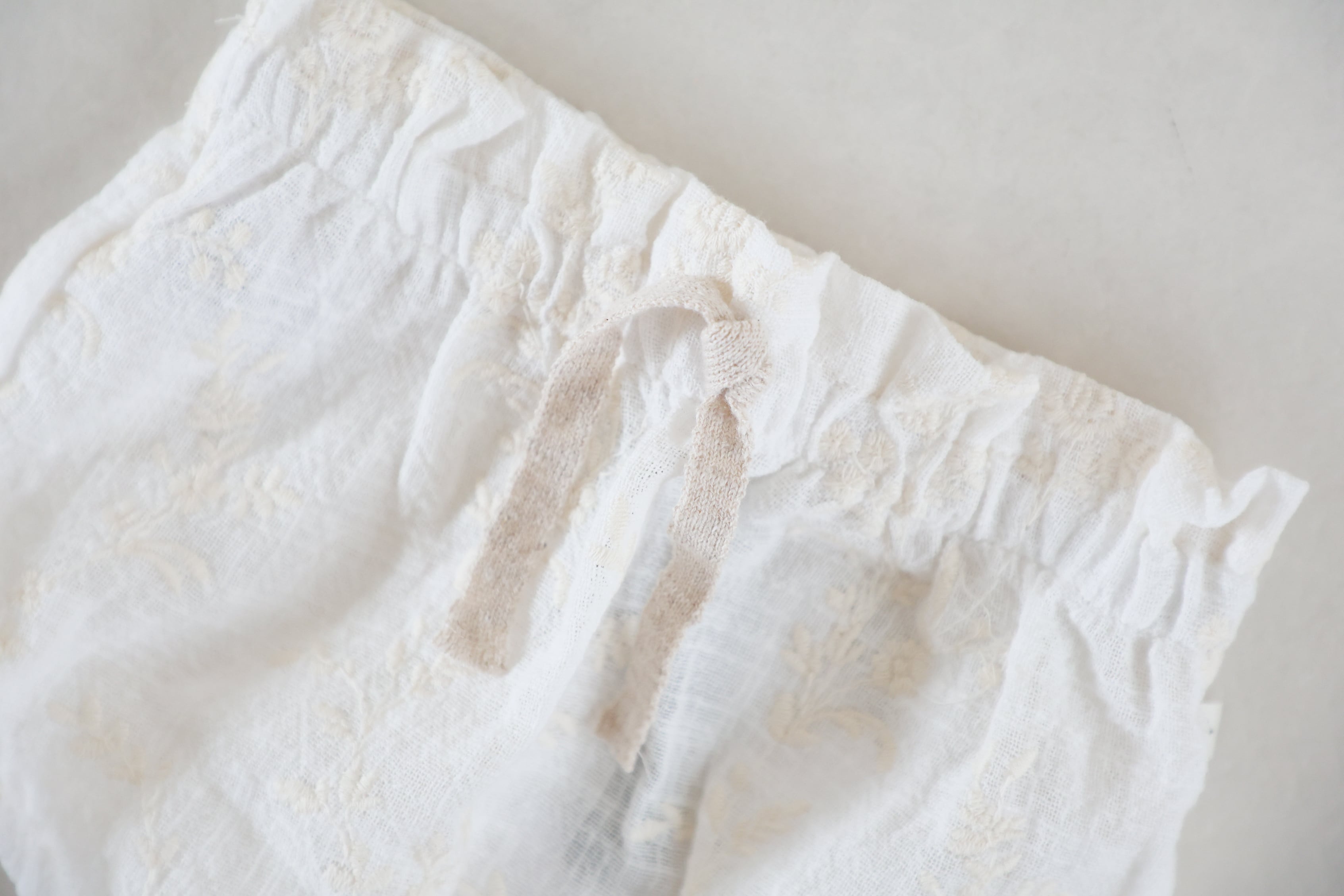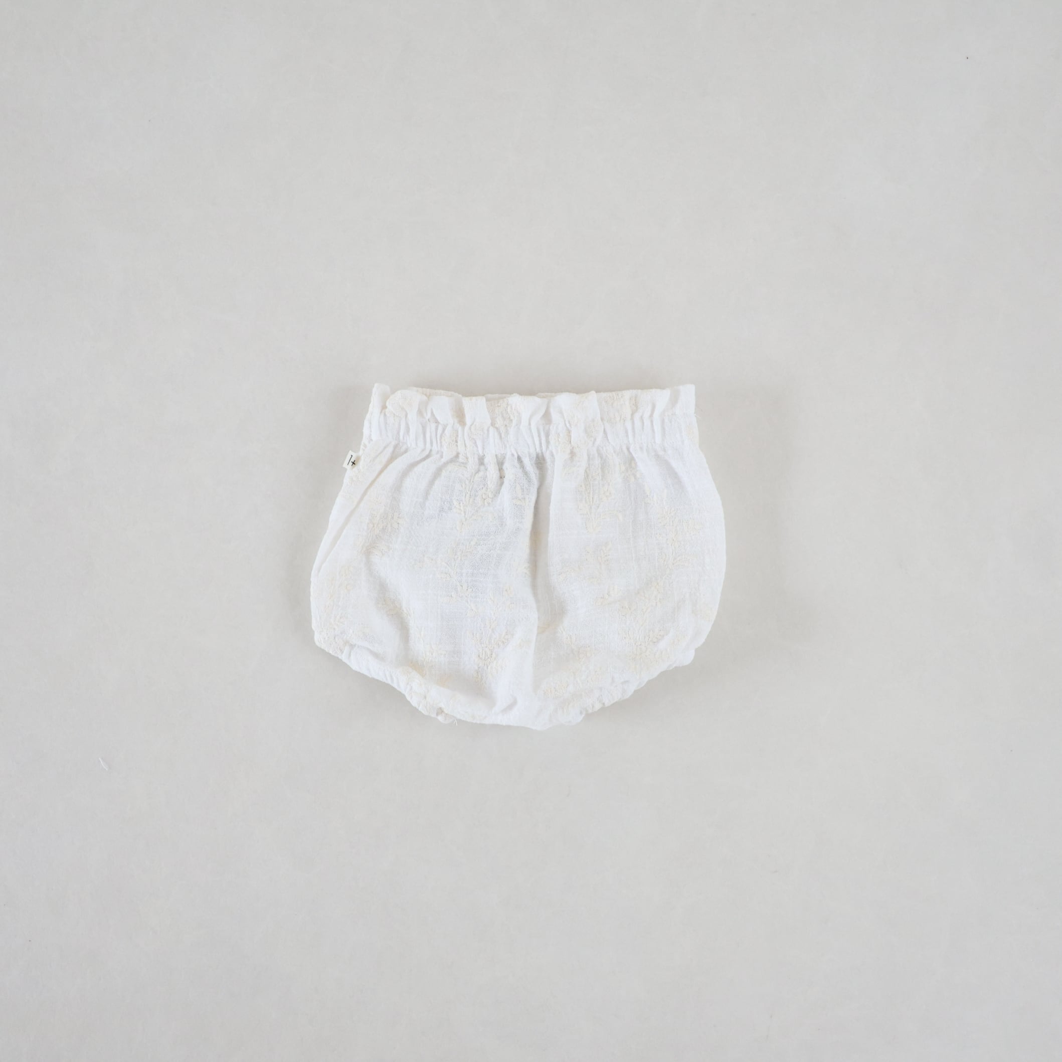 お花の刺繍が施された可愛らしいベビーブルマ。