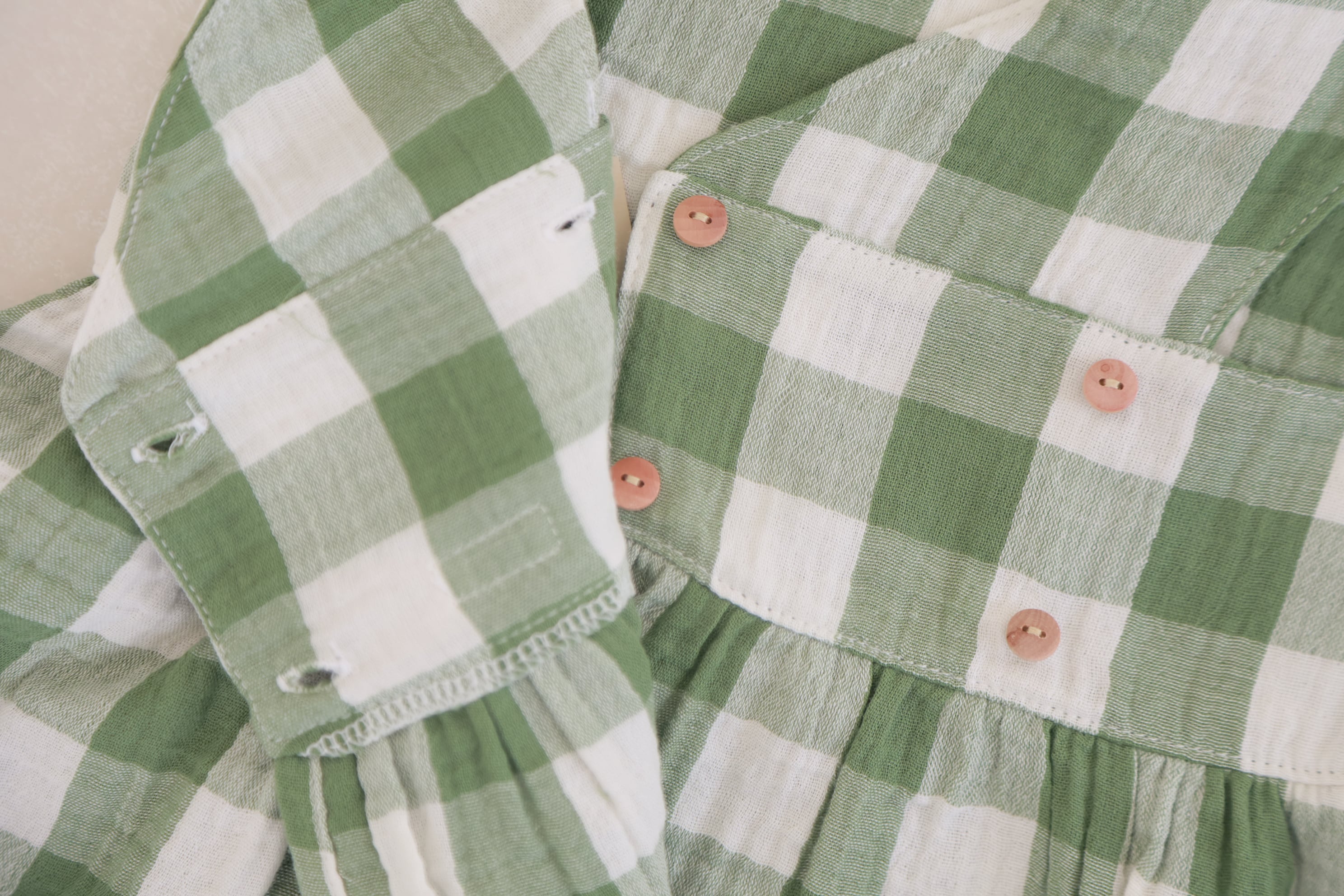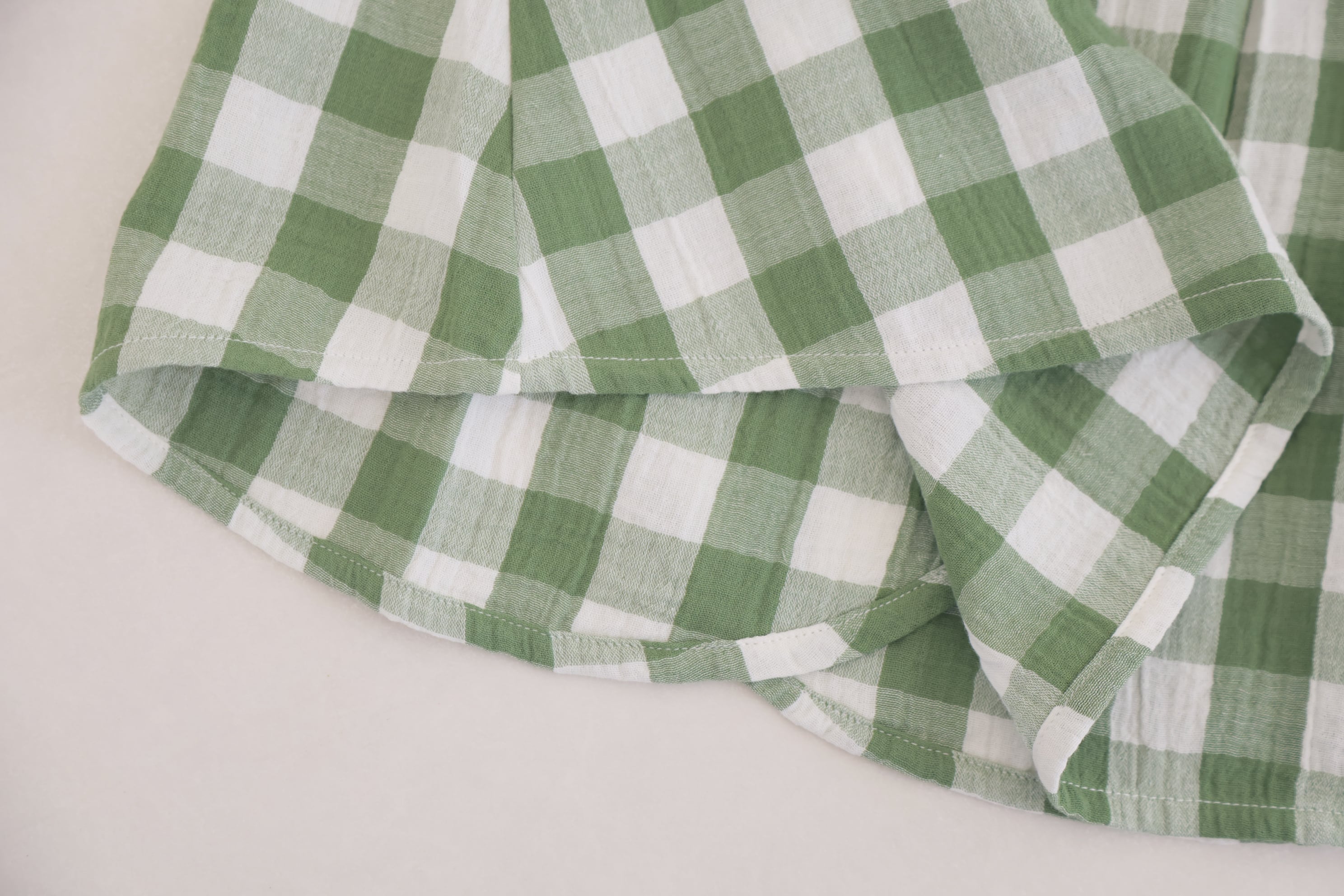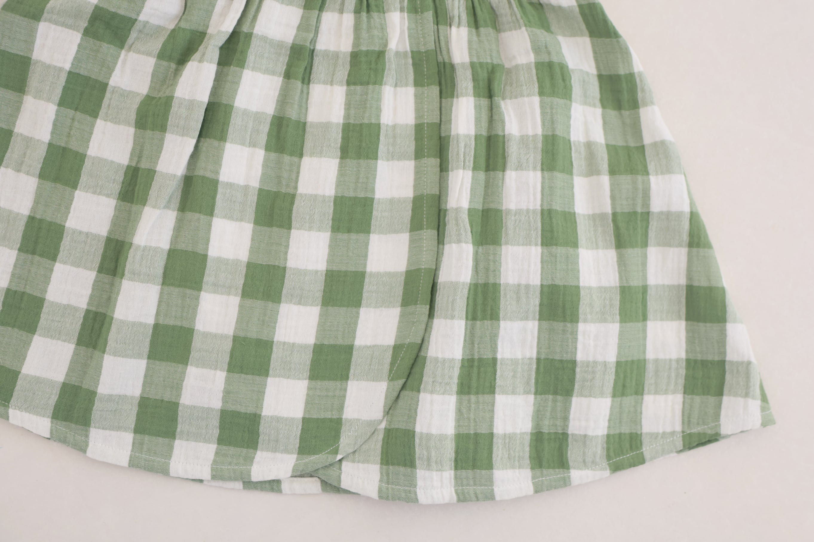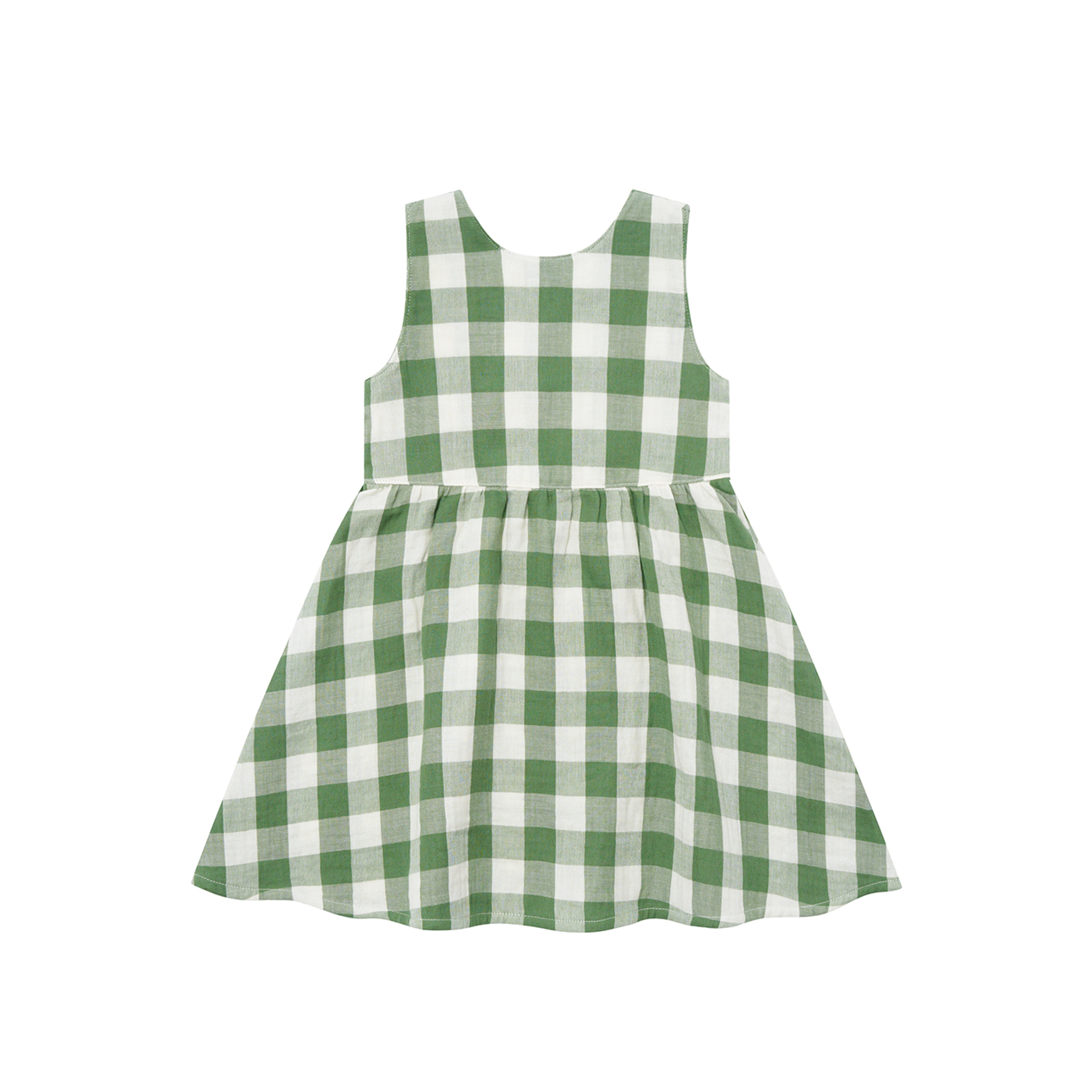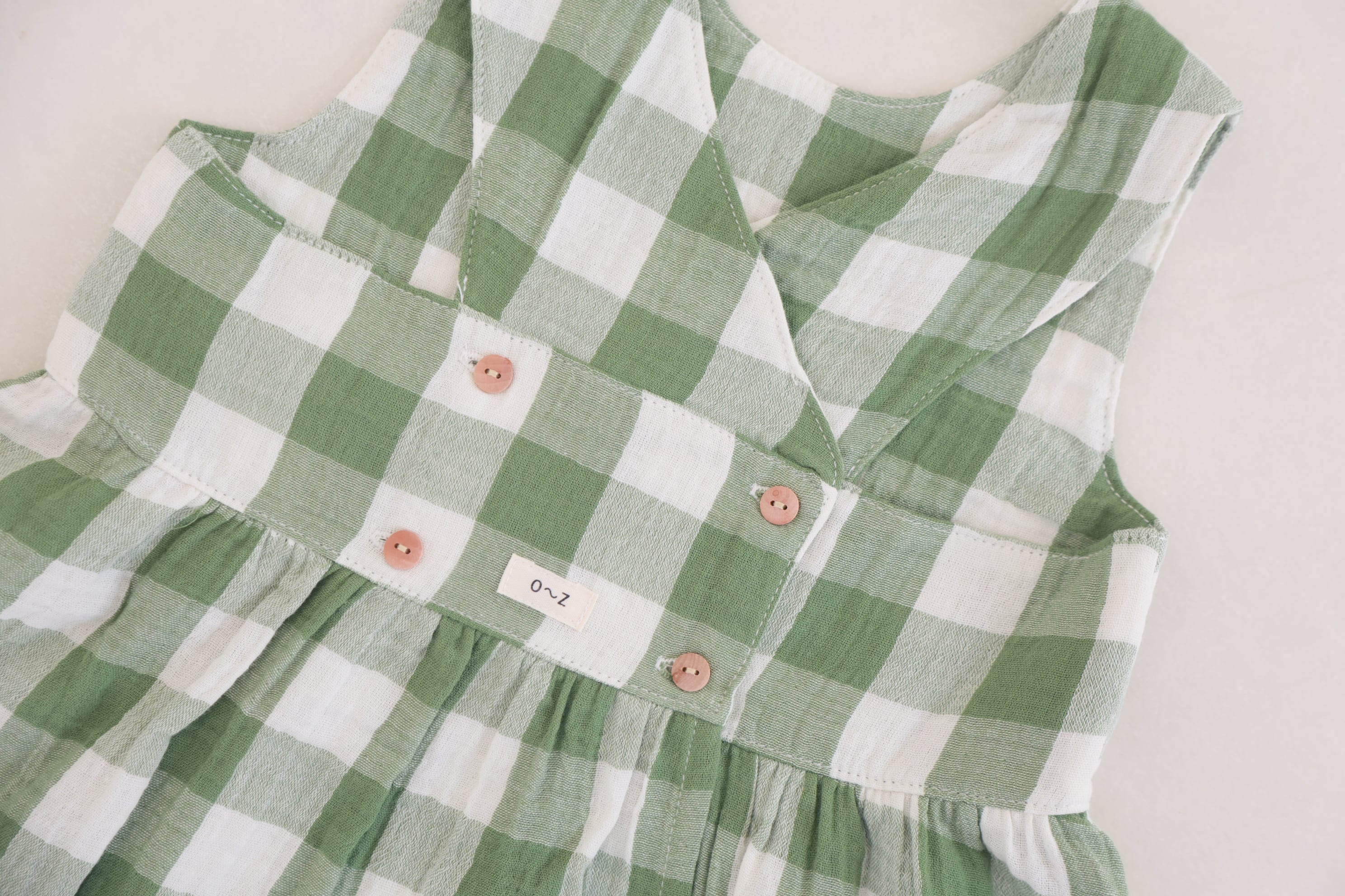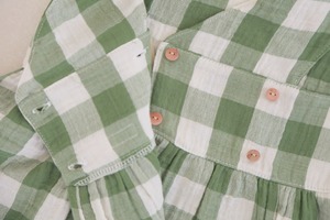 グリーン×ホワイトのギンガムチェックが可愛らしいノースリーブワンピース。
