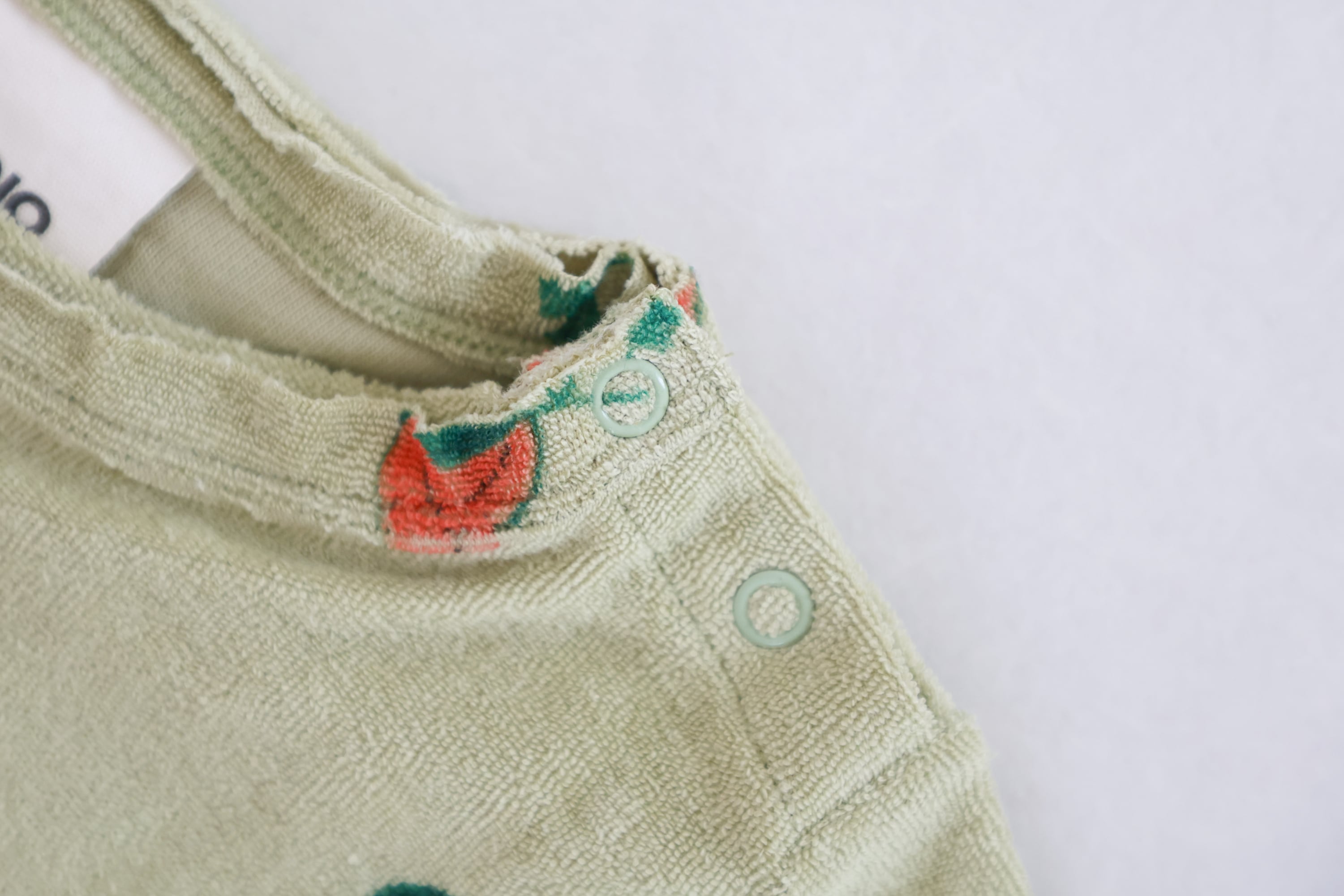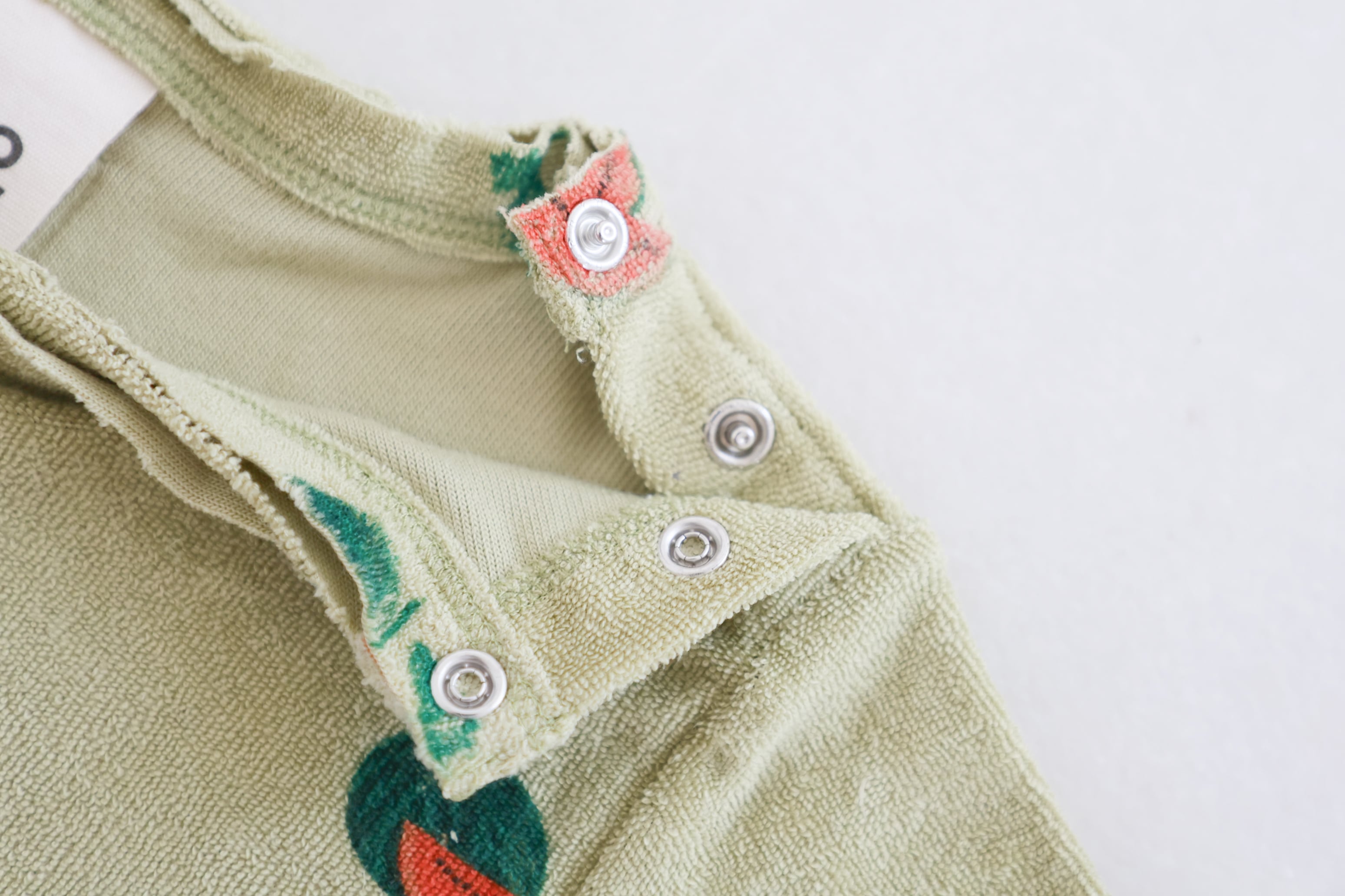着脱しやすい首元にスナップボタンあり。