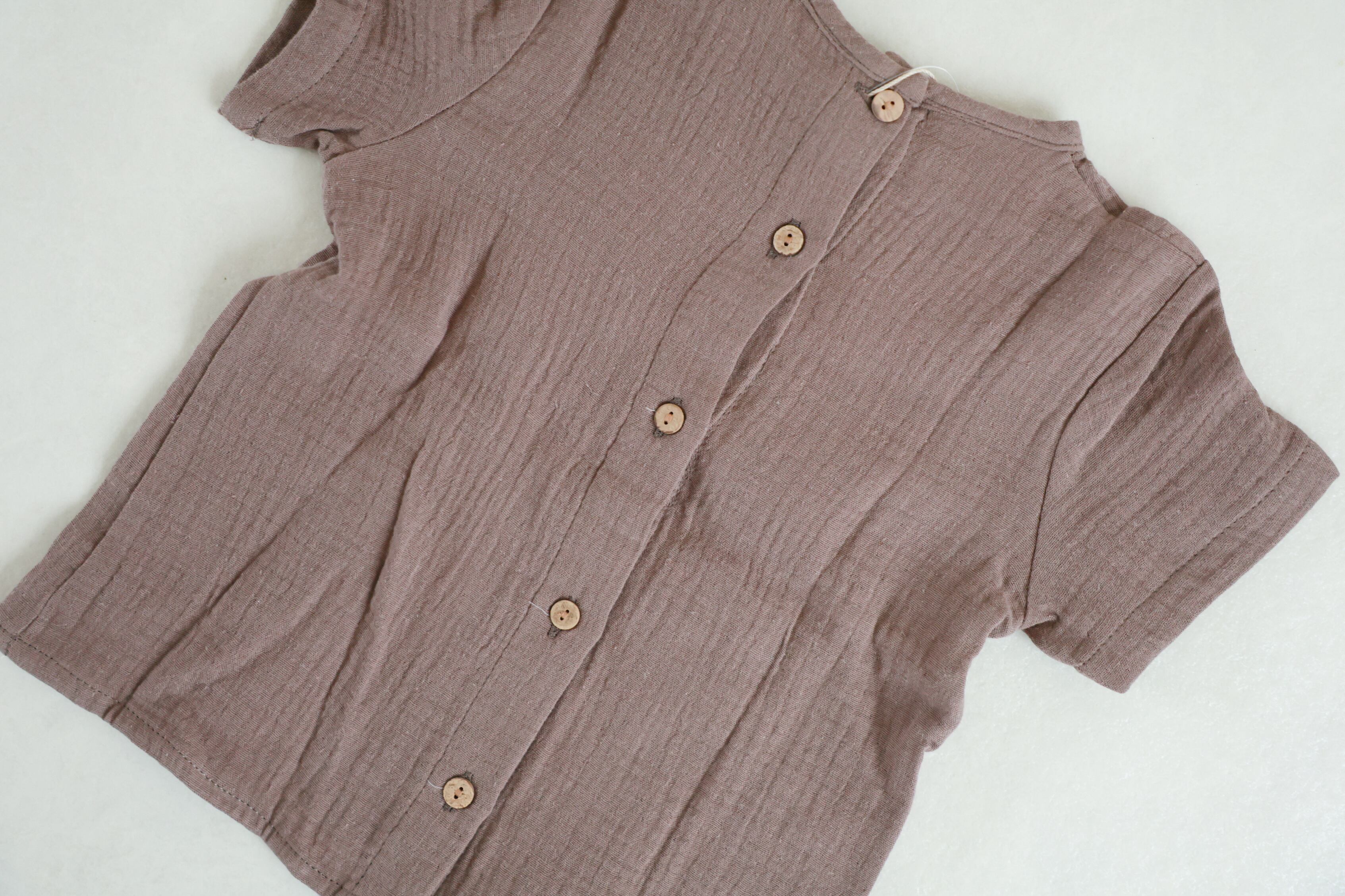 背中部分にはウッドボタンがついているのでお着替えもしやすく、