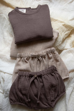 こども達が心地よく着用できるようコットンや麻などの天然素材を使用した丁寧なつくりのアイテムは、人権に配慮したフェアトレードとサステナブルな生産を忠実に守り、テキスタイルも含め、原材料と生産の全てがスペイン国内で製作されています。