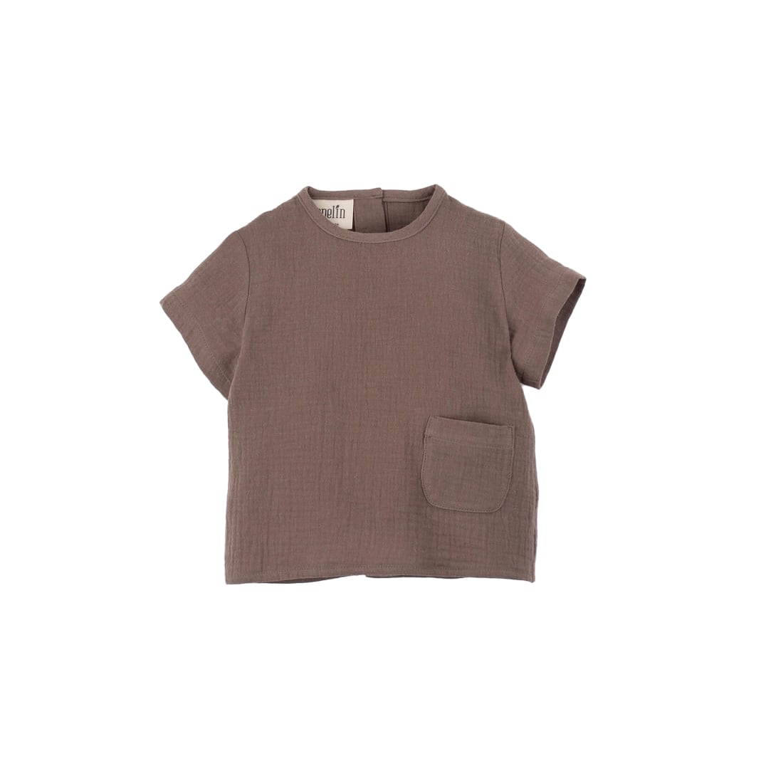 Popelin(ポペリン) / Brown organic shirt with pocket / 12-18M・2-3Y
