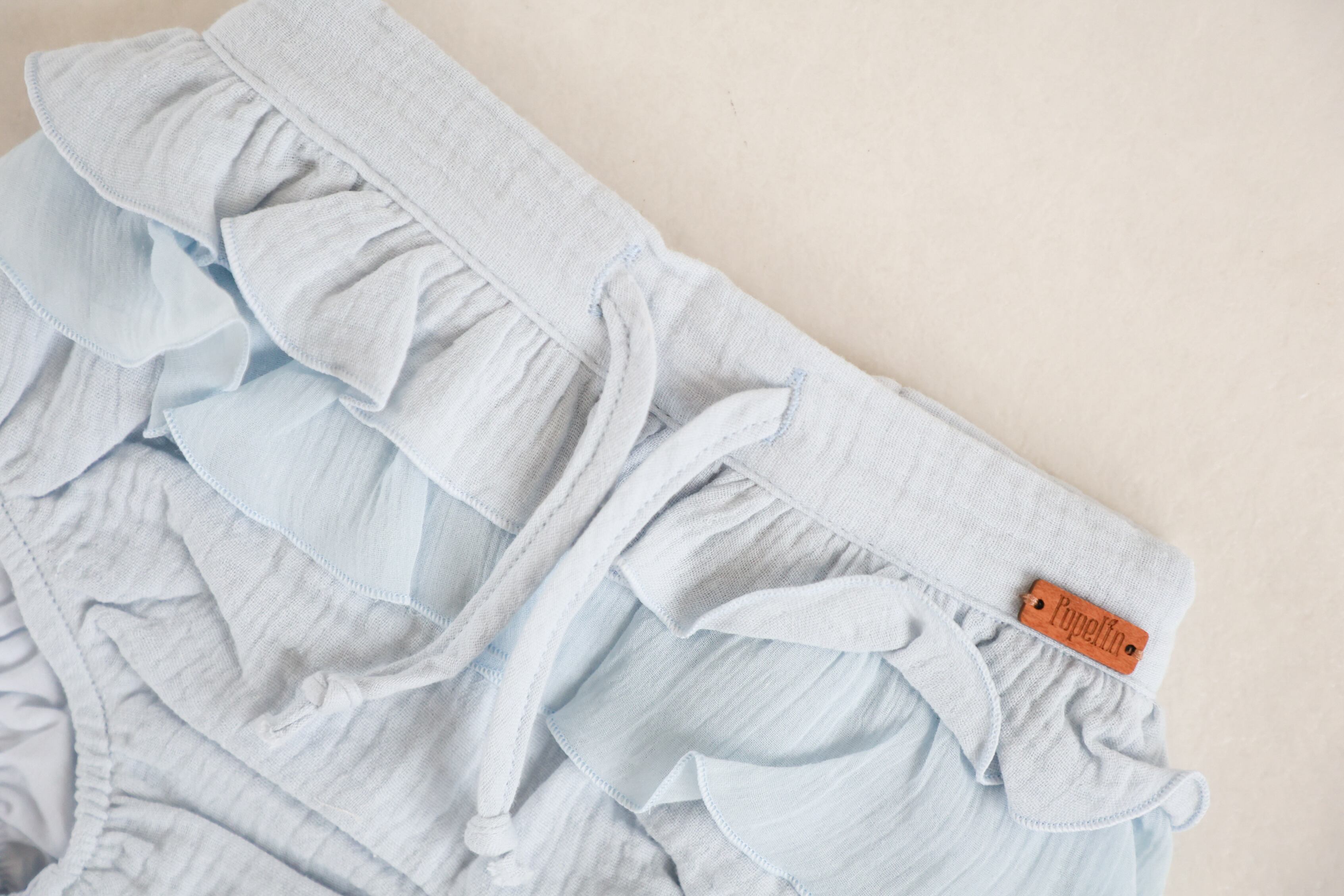 Popelin(ポペリン) / Blue organic culotte with double frill / 12-18M・2-3Y