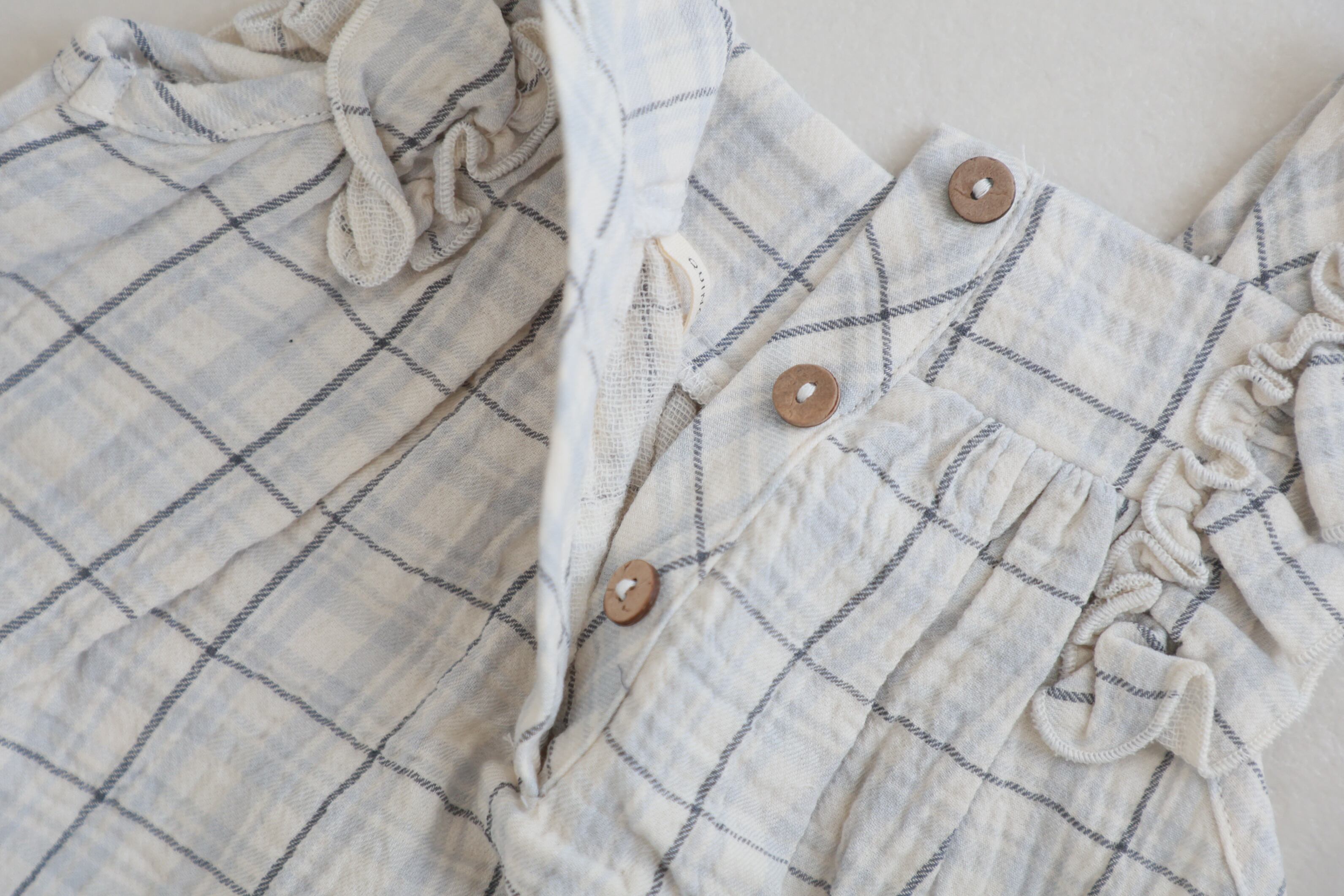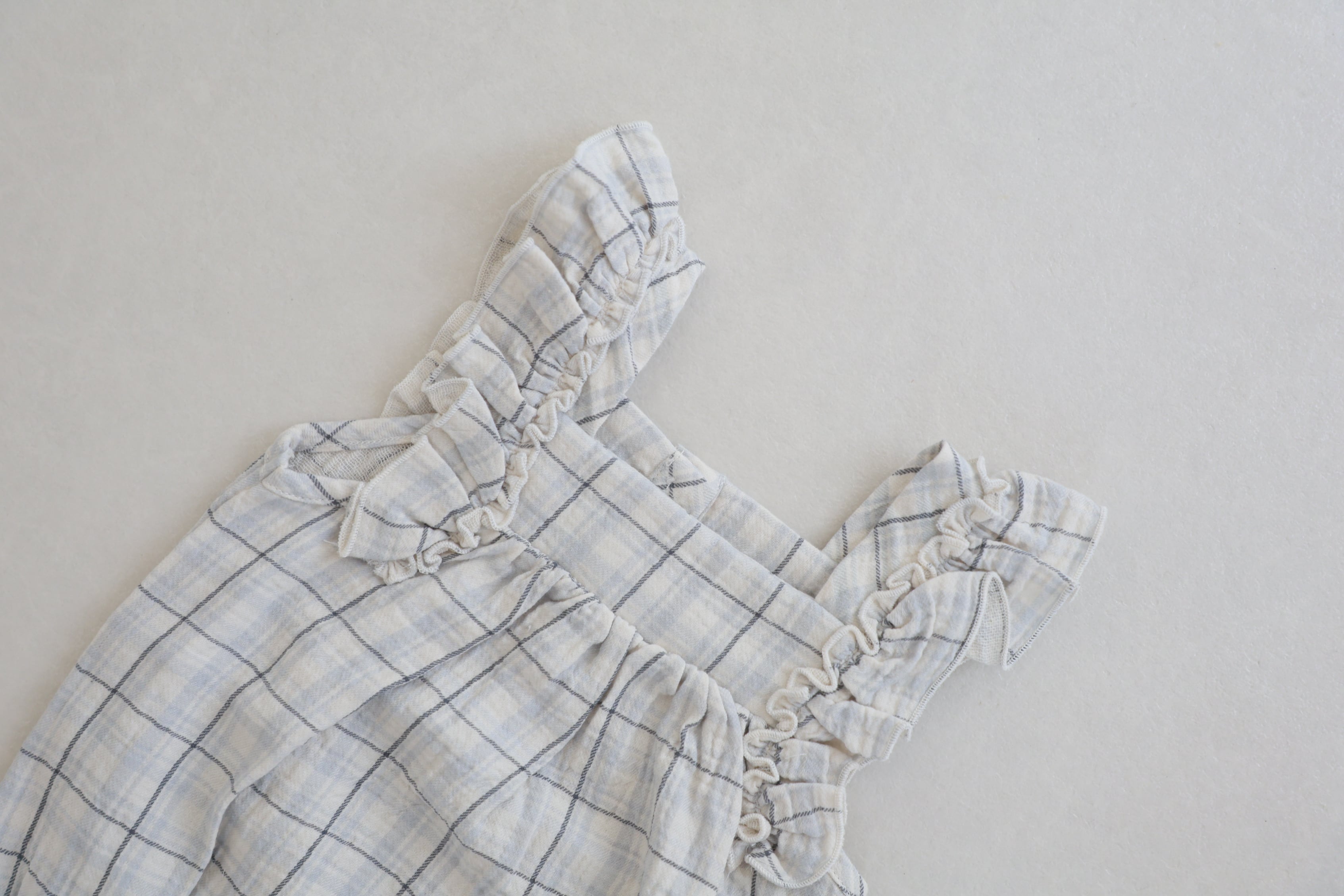 Quincy Mae(クインシーメイ) / 26ss MAYA ROMPER / BLUE PLAID / 6-12M・12-18M