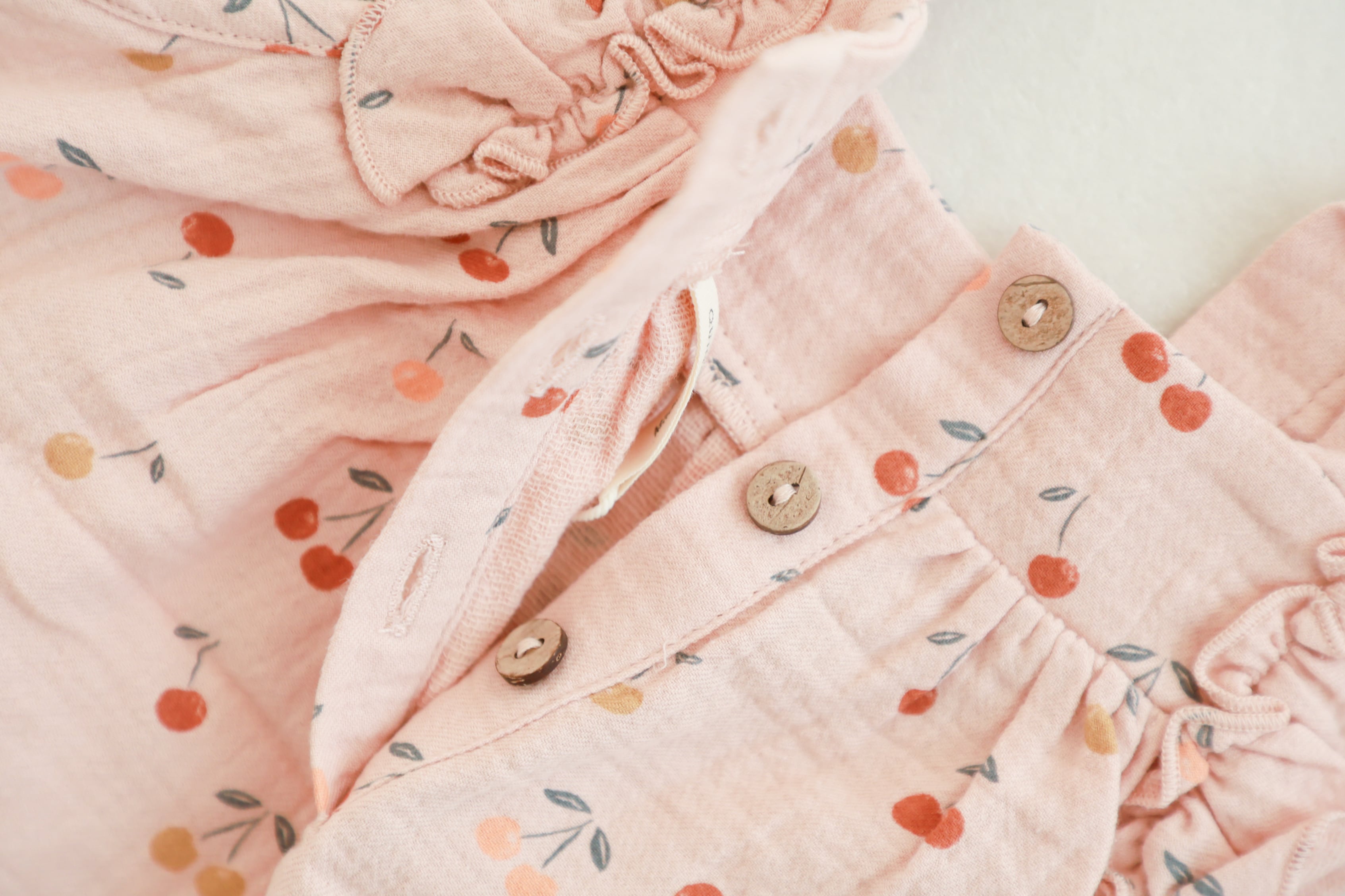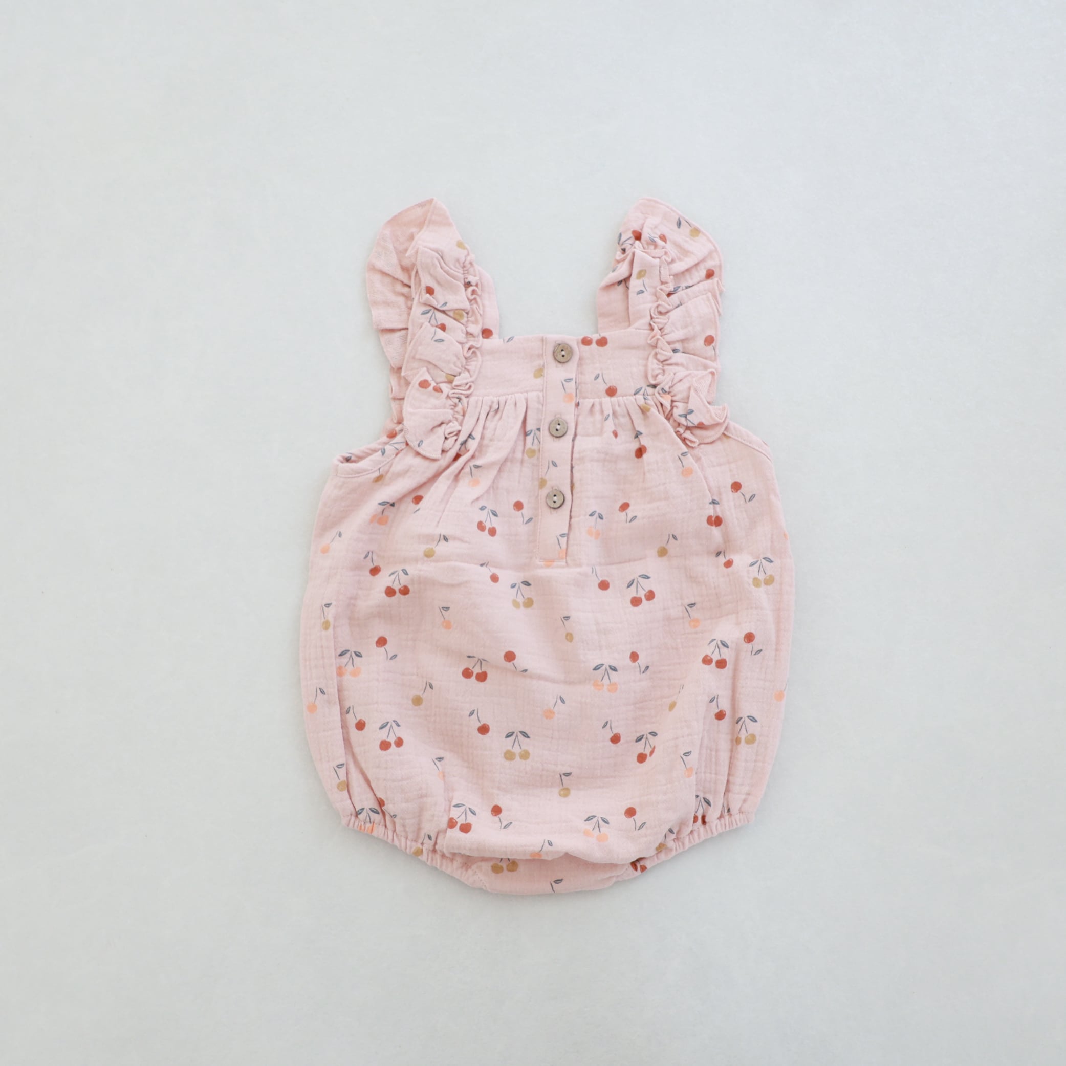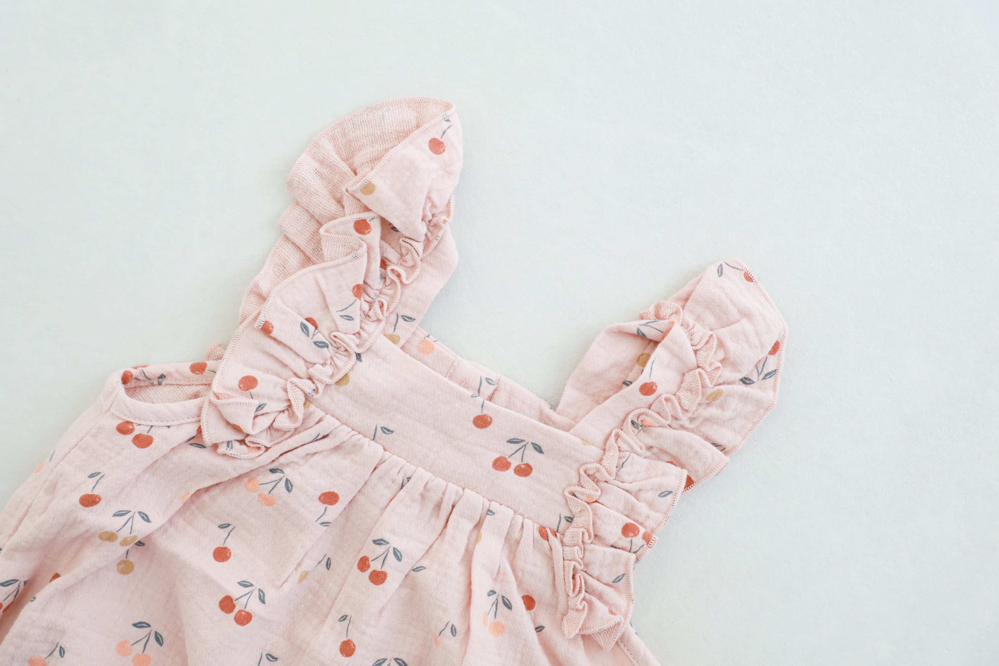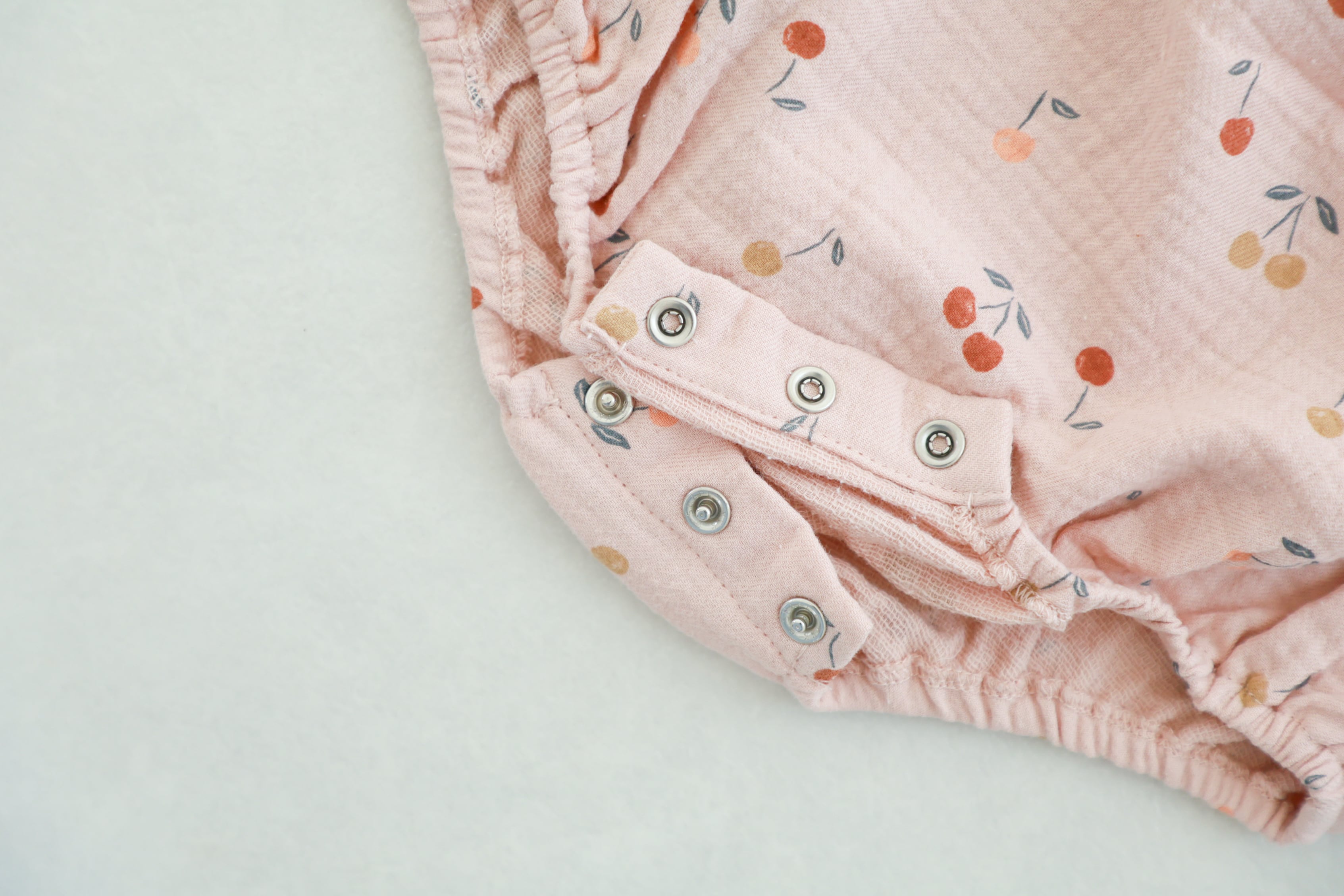 さくらんぼのデザインが可愛らしいロンパース。