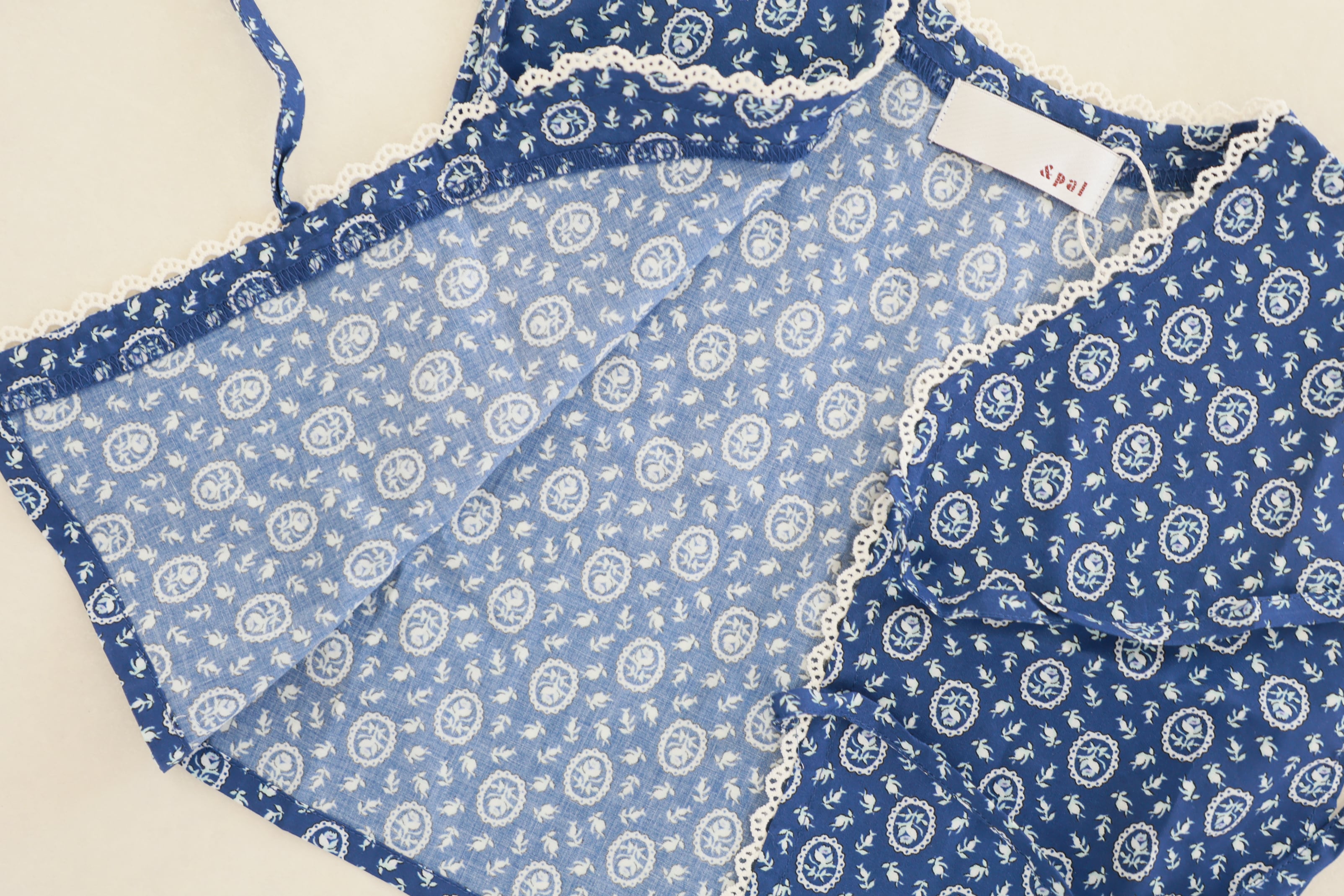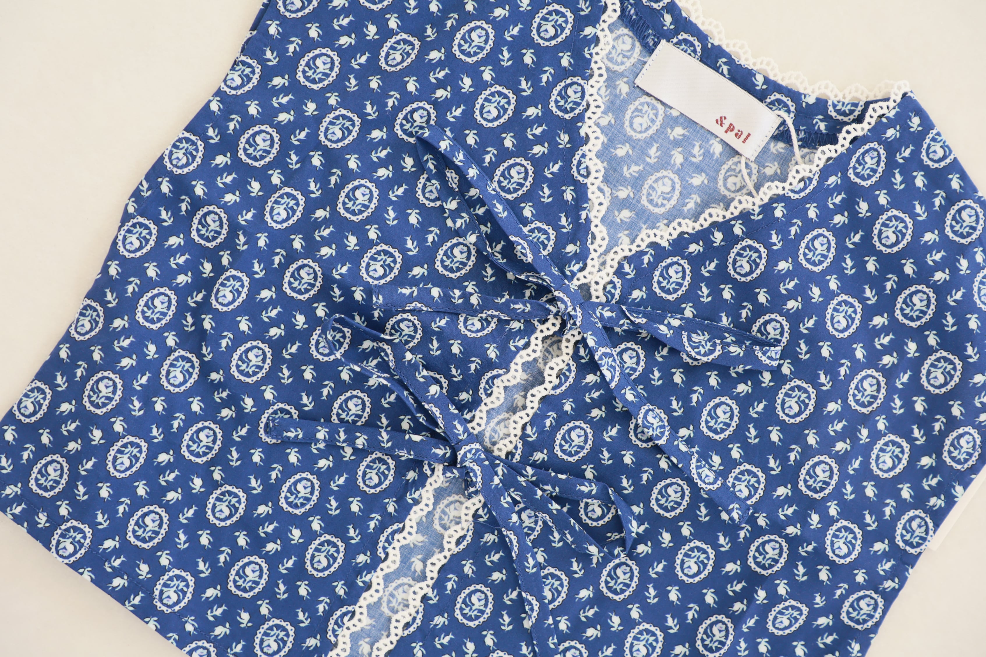 ブルーが新鮮な花柄プリントシリーズよりガーリーなブラウス。