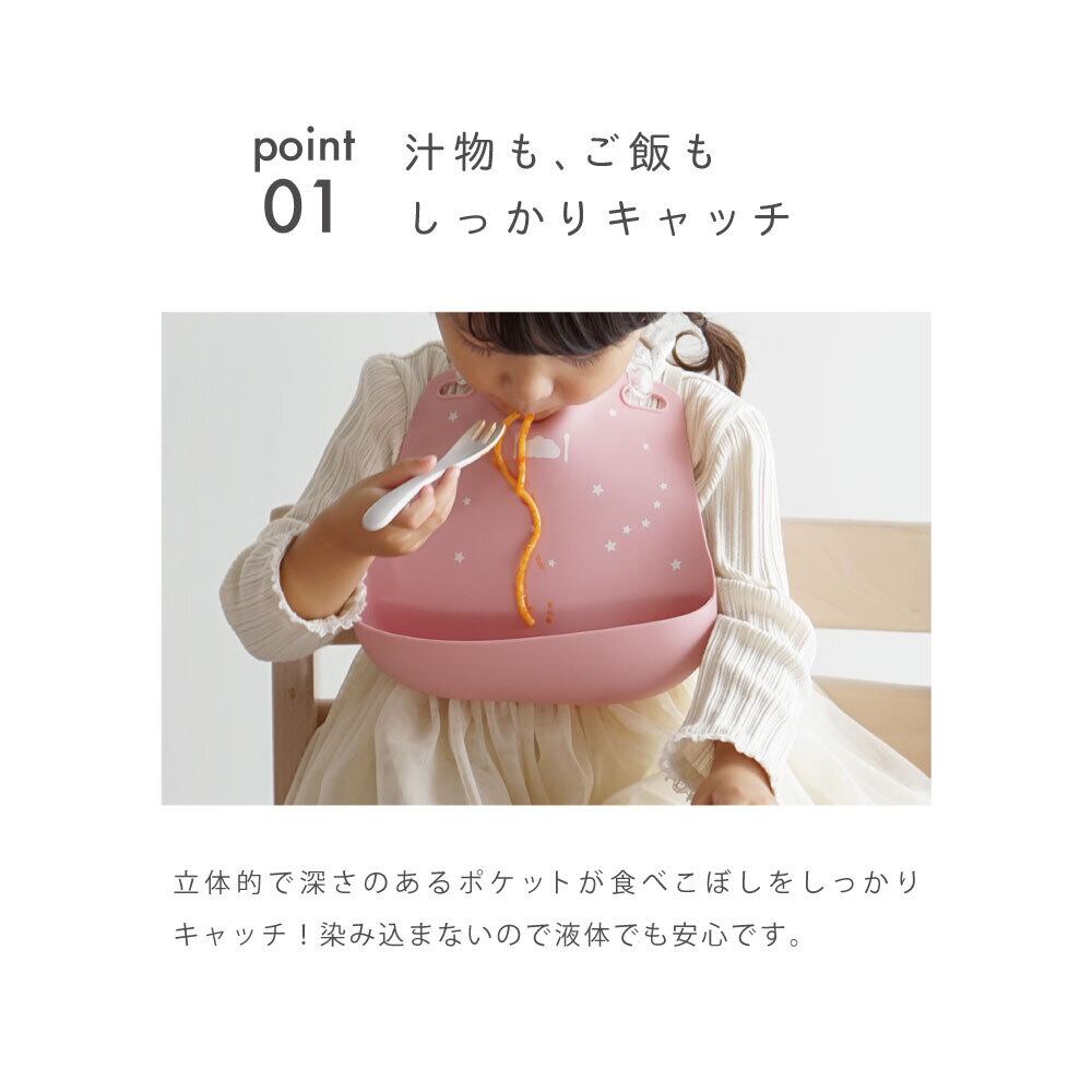 シリコーンのビブ本体部分は、食洗器でのお手入れもでき、毎日の繰り返しの使用にとても便利です。