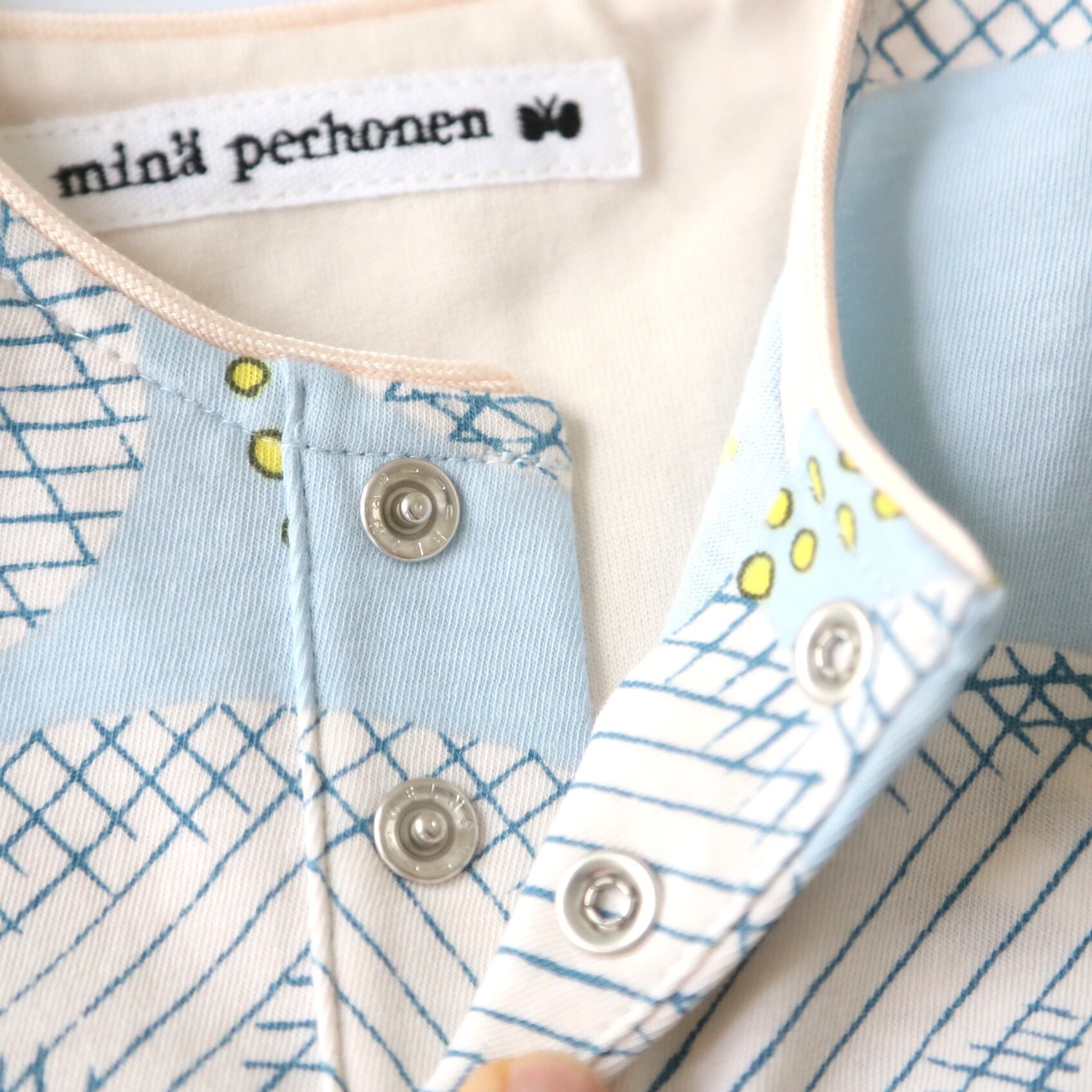 ブランド名は、デザイナーが北欧への旅を重ねる中で、そのライフスタイルやカルチャーに共鳴し、フィンランドの言葉から取った。「minä」は「私」、「perhonen」は「ちょうちょ」を意味する言葉。蝶の美しい羽のような図案を軽やかに作っていきたいという願いを込めている。ブランドロゴは、「私(四角)の中のさまざまな個性(粒の集合)」を表す。蝶の種類が数え切れないほどあるように、デザイナーの生み出すデザインもまた、増え続ける。