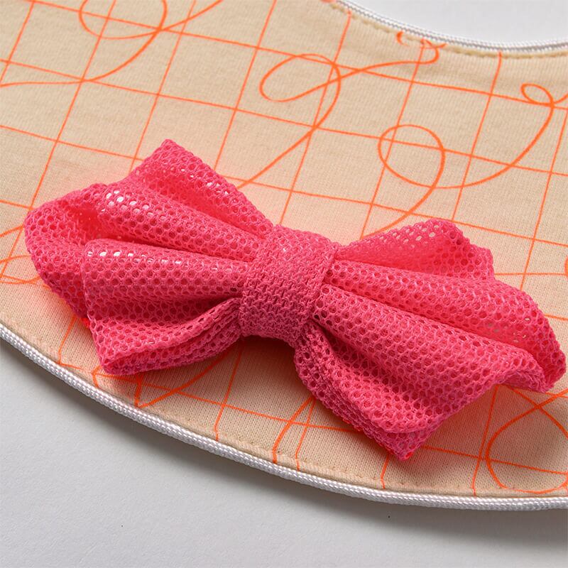※よだれのつたいもれ防止のため、一般的なスタイよりも、首回りが小さめのつくりになっています。