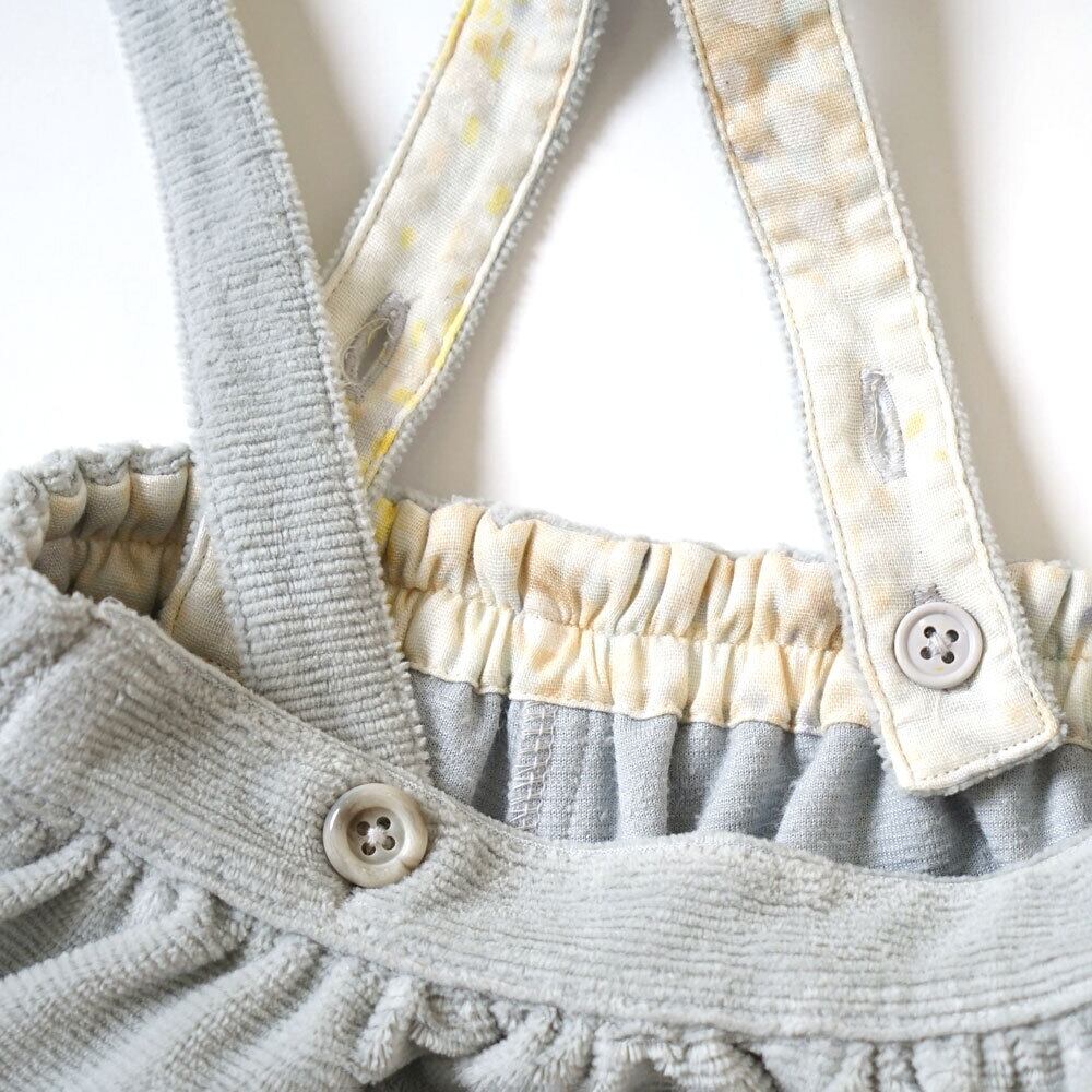 伸縮性のあるコーデュロイ素材で着心地も良く、サスペンダーを取り外しても使えるので、