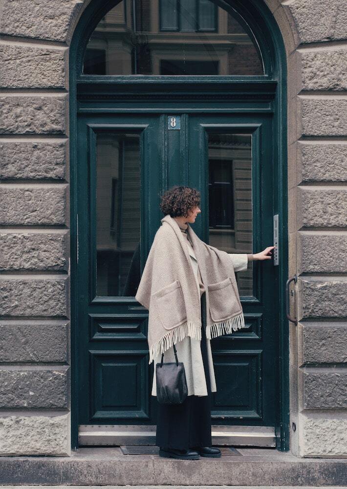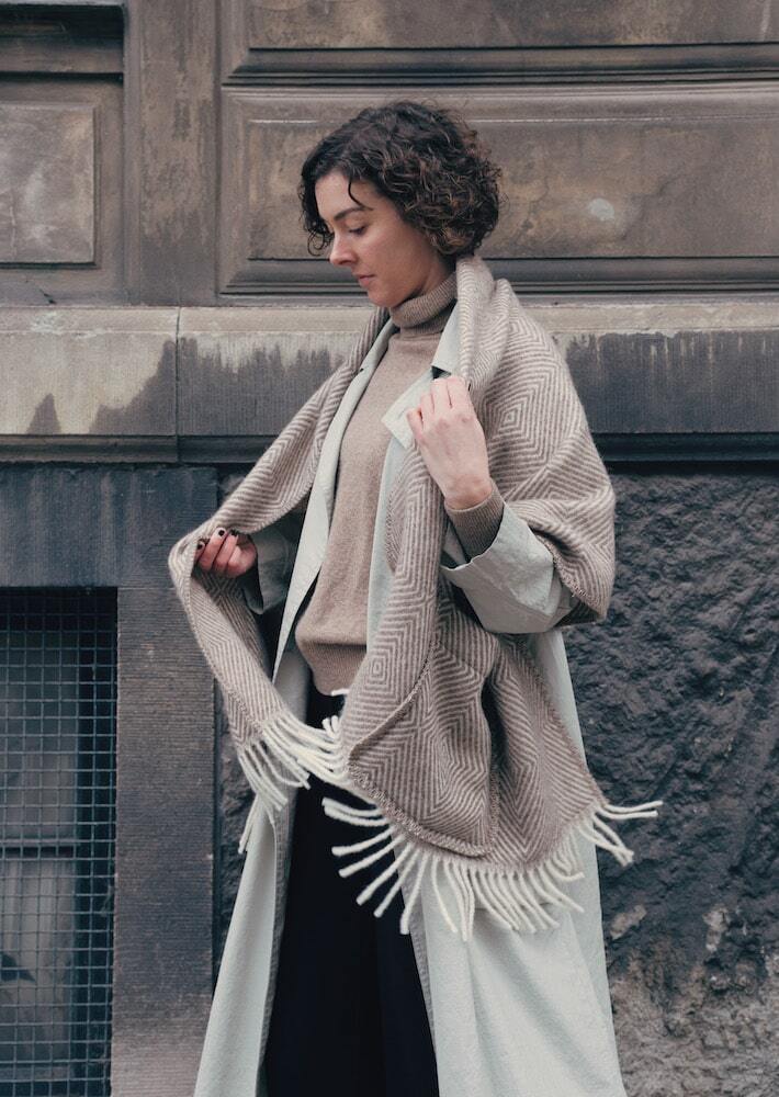 ポケットショールは日々の生活に溶け込む手軽さと羽織るだけでスタイルアップしてくれるファッション性が魅力。
