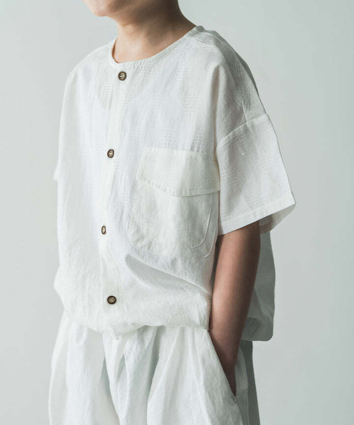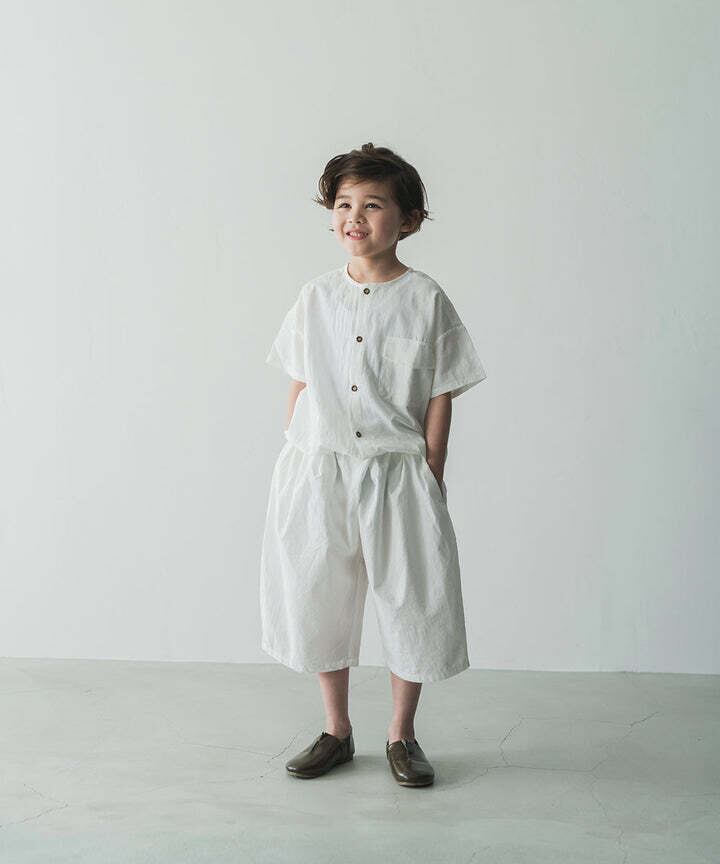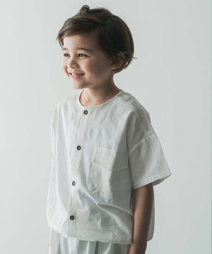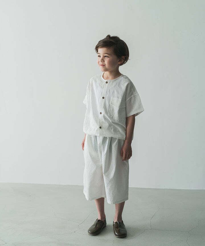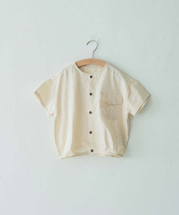 rizière / ノーカラーナチュラルブラウス / white・beige / 100-130cm