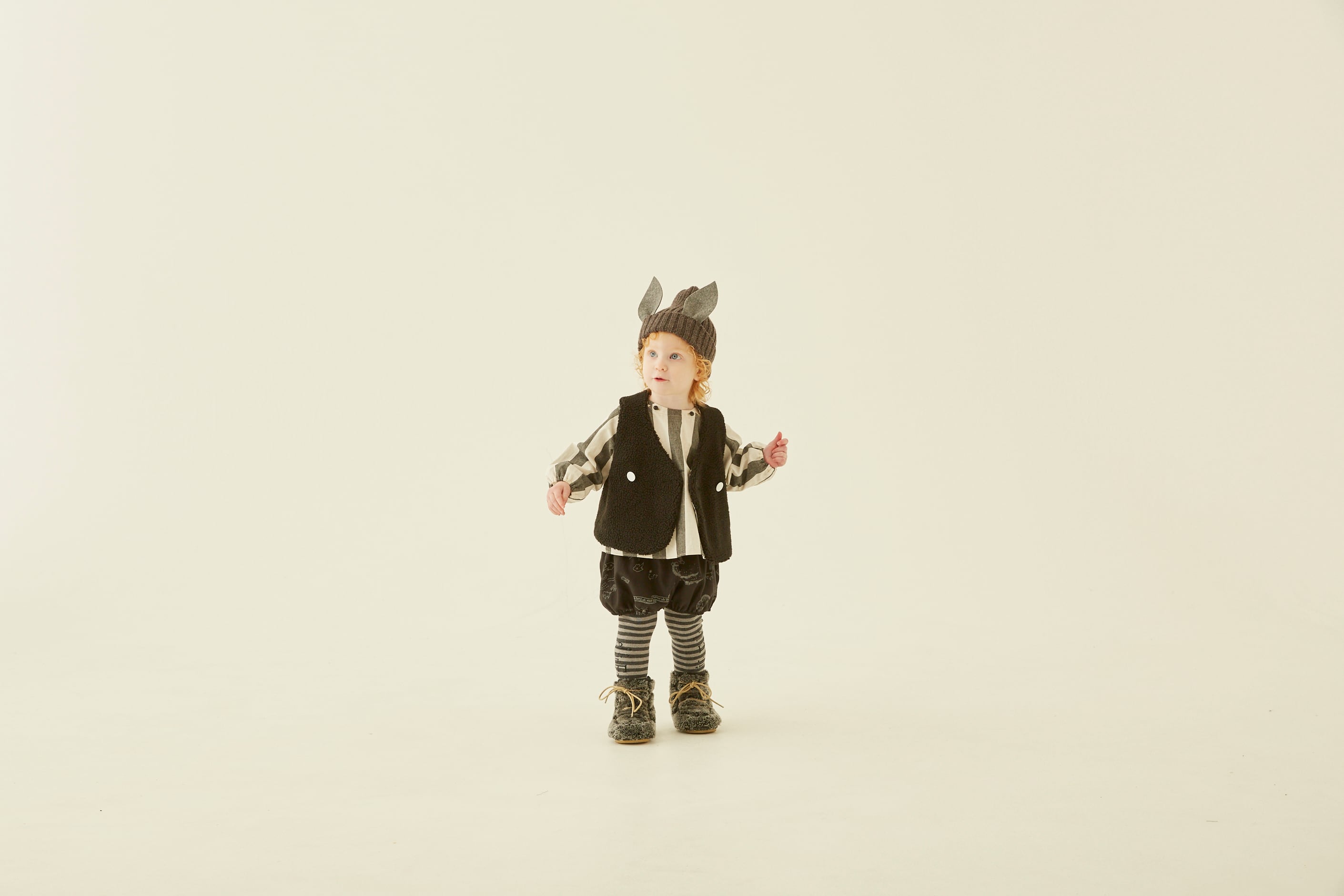 eLfinFolk(エルフィンフォルク)/ Cotton linen Wide stripe baby blouse / black / 80,90cm