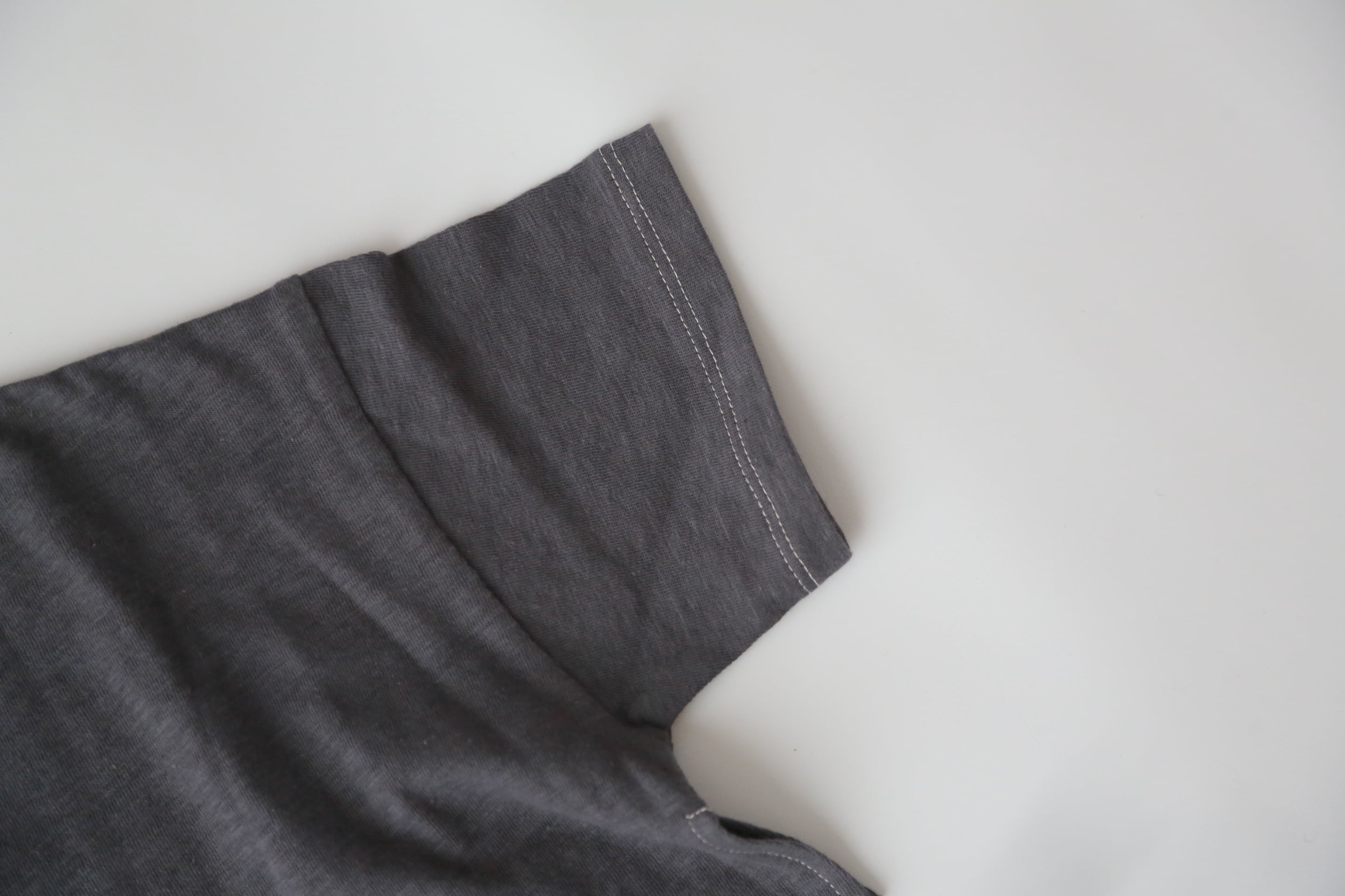 古着のようなラフコット天竺に、シャツの裾のように薄手のコットンワッシャーを切りっぱなしにレイヤードした一着。旅路で風化していくようなイメージを表現しています。