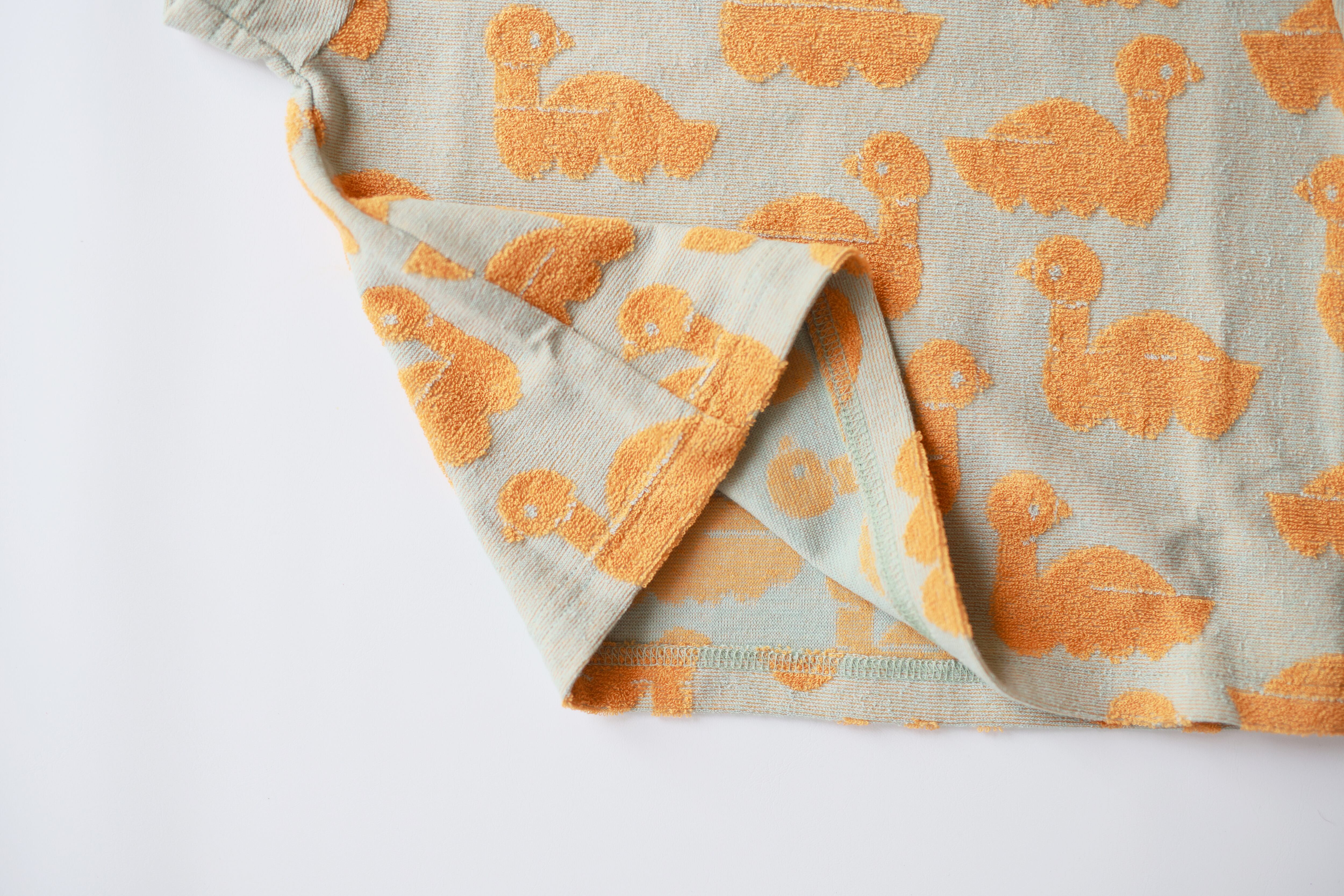 パイル生地は丈夫で肌触りが良く、身幅のゆったりしたシルエット。