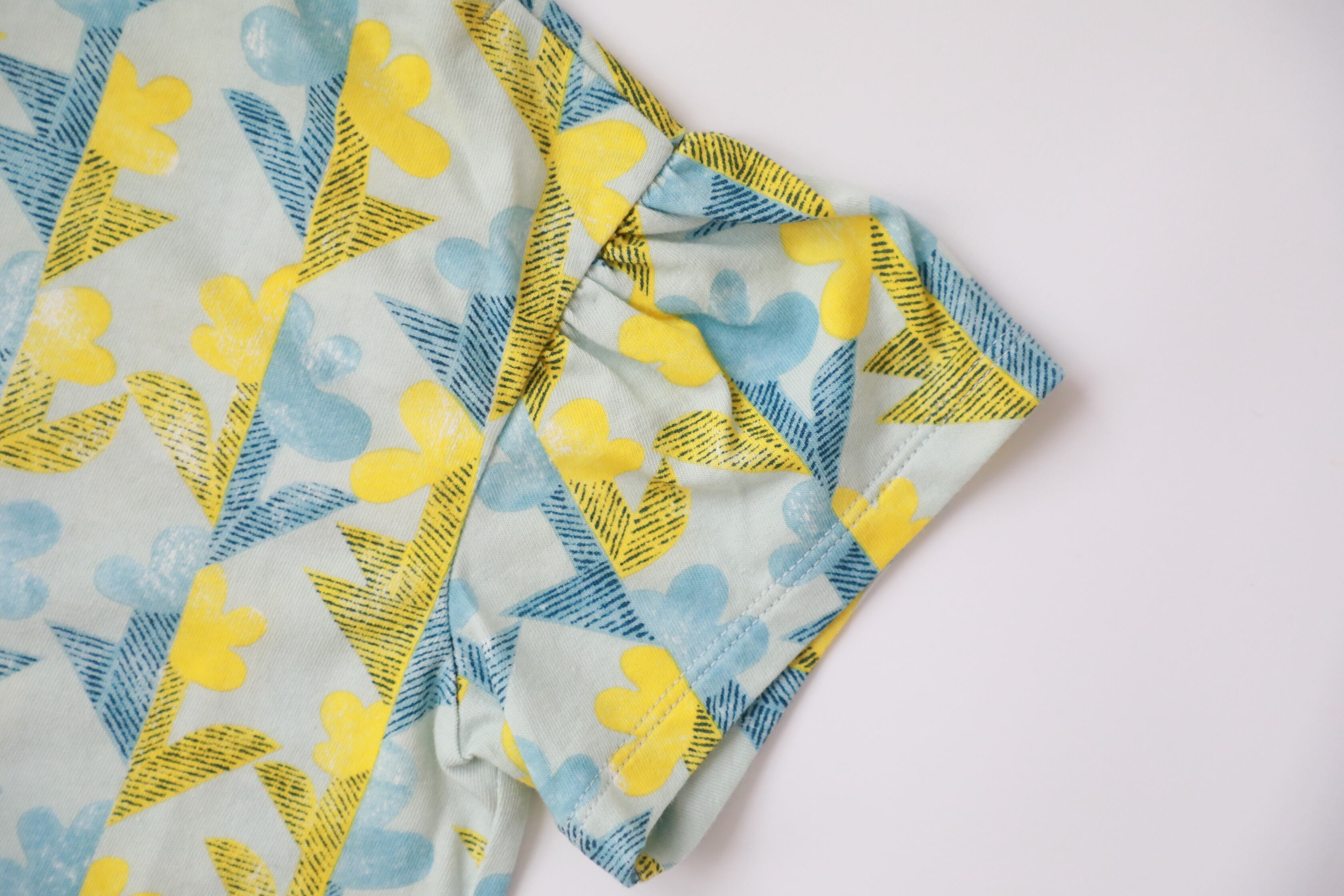 柔らかな質感のコットン糸でカットソーを作りました。すこしドロップした位置にギャザーを寄せた袖のデザインが愛らしく、