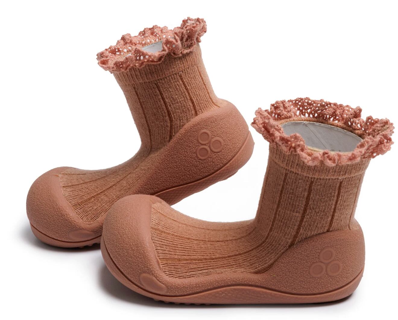 歩き方に着目したまん丸と膨らんだ足先のソールで