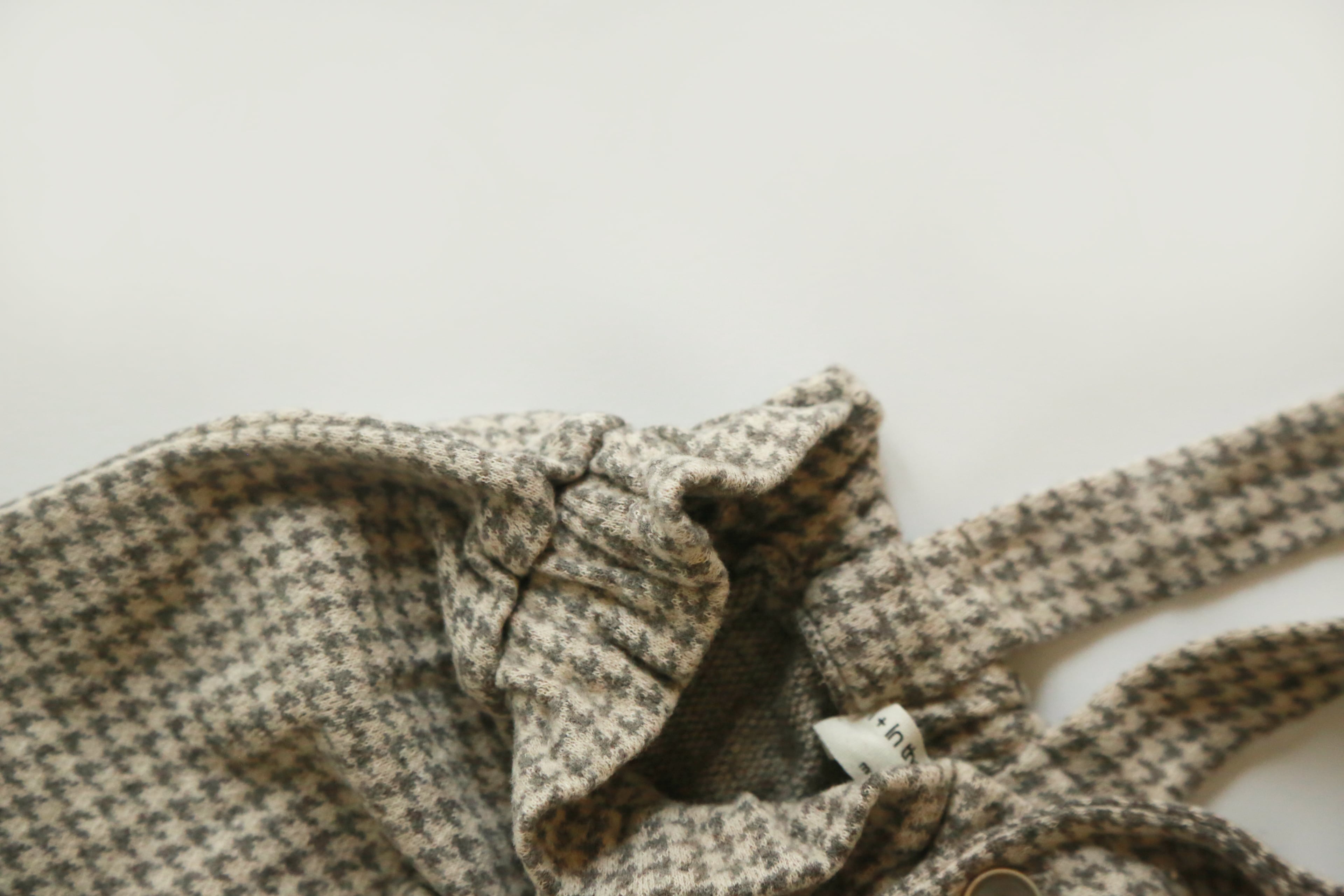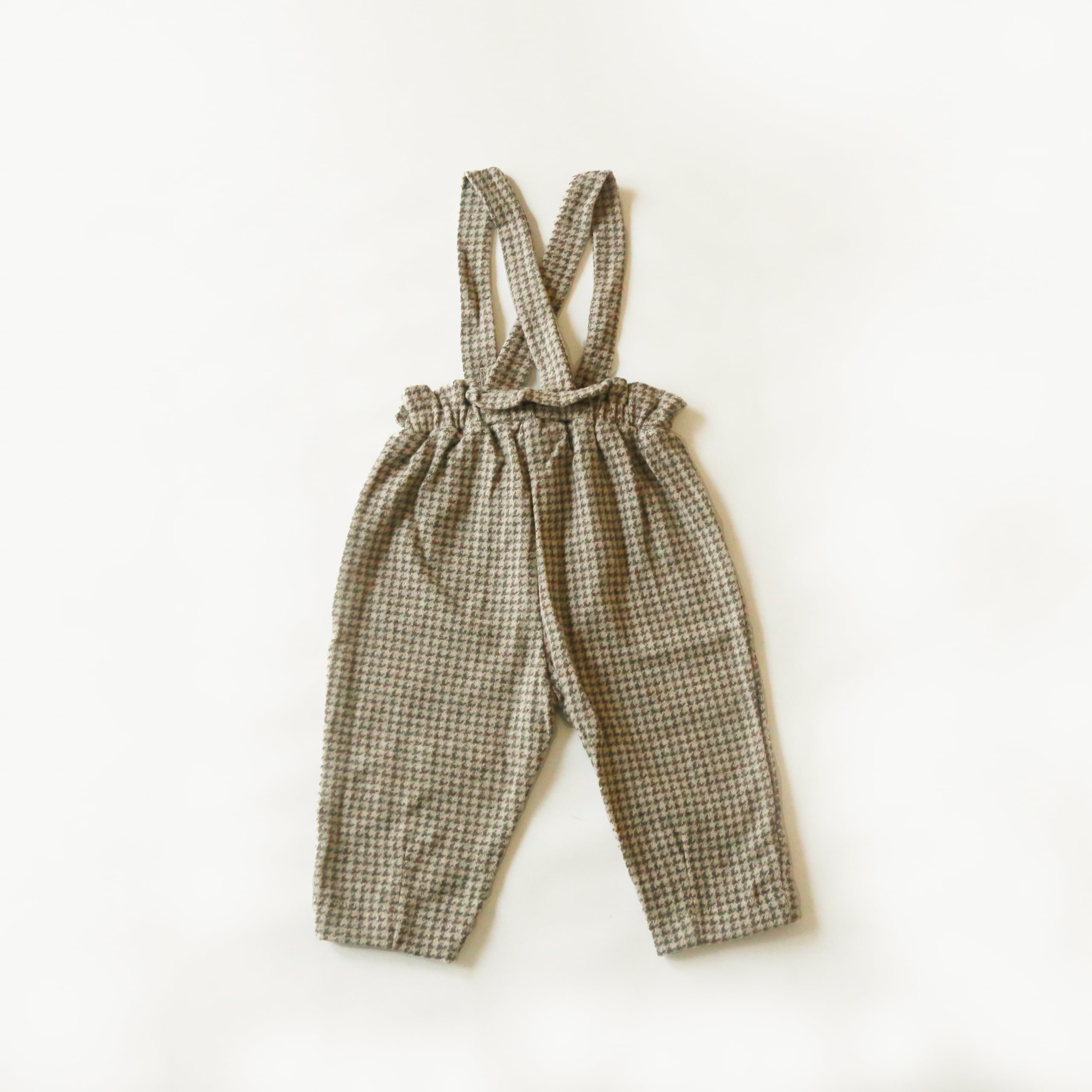 千鳥格子が目を惹くサロペット。