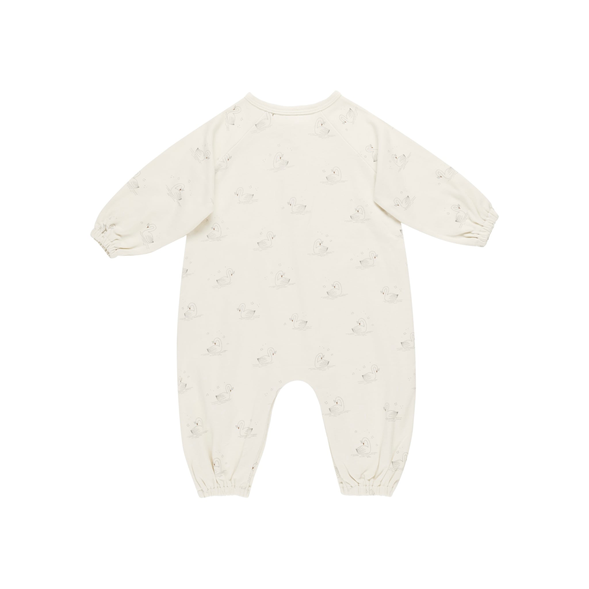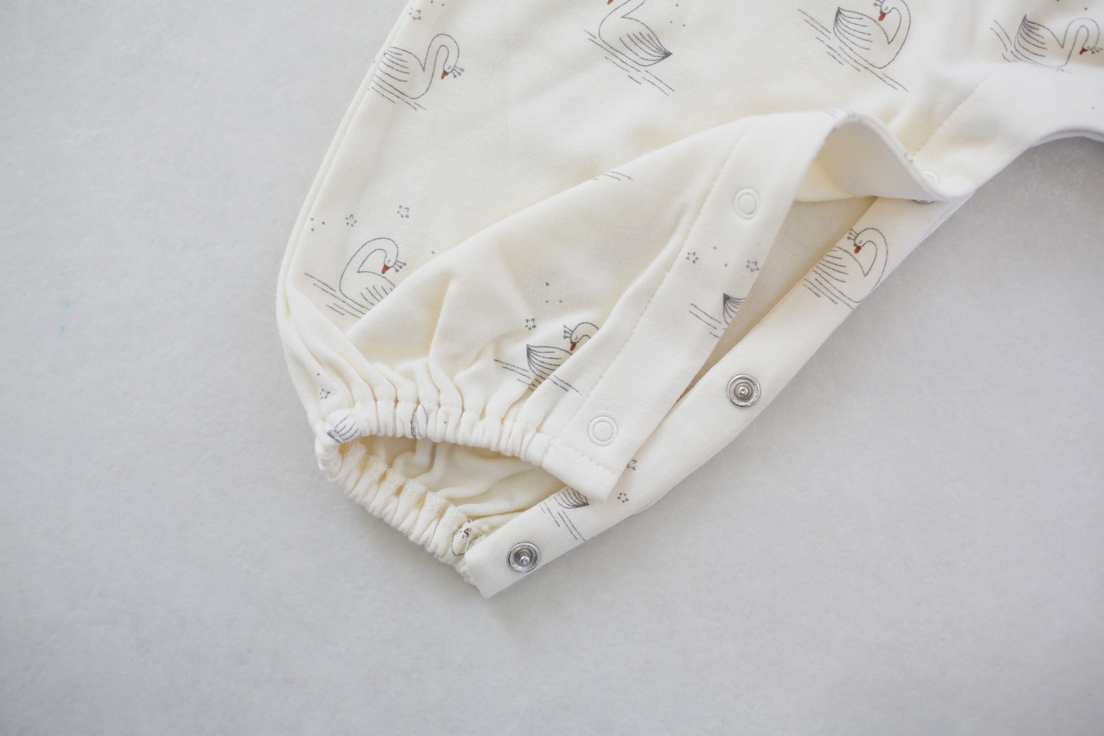 スワンの優しいデザインが可愛らしいジャンプスーツ。
