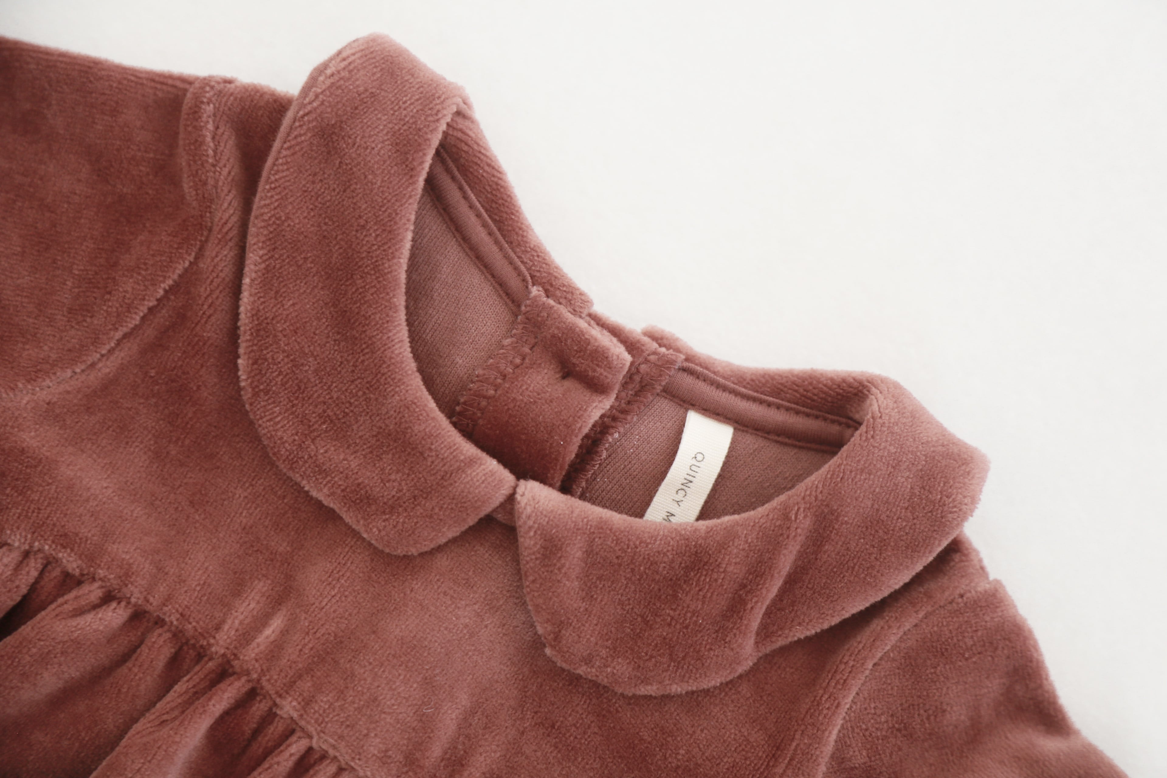 Quincy Mae(クインシーメイ)/ 24aw PETER PAN ROMPER / CRANBERRY / 6-12M・12-18M