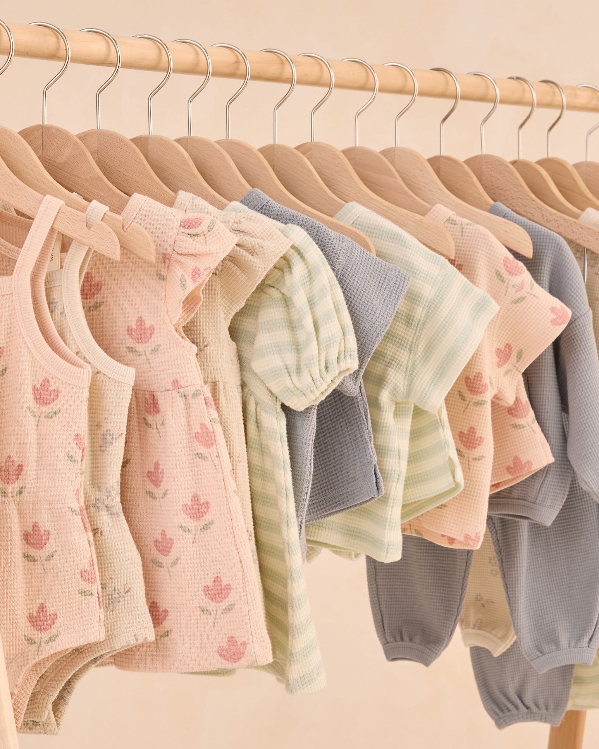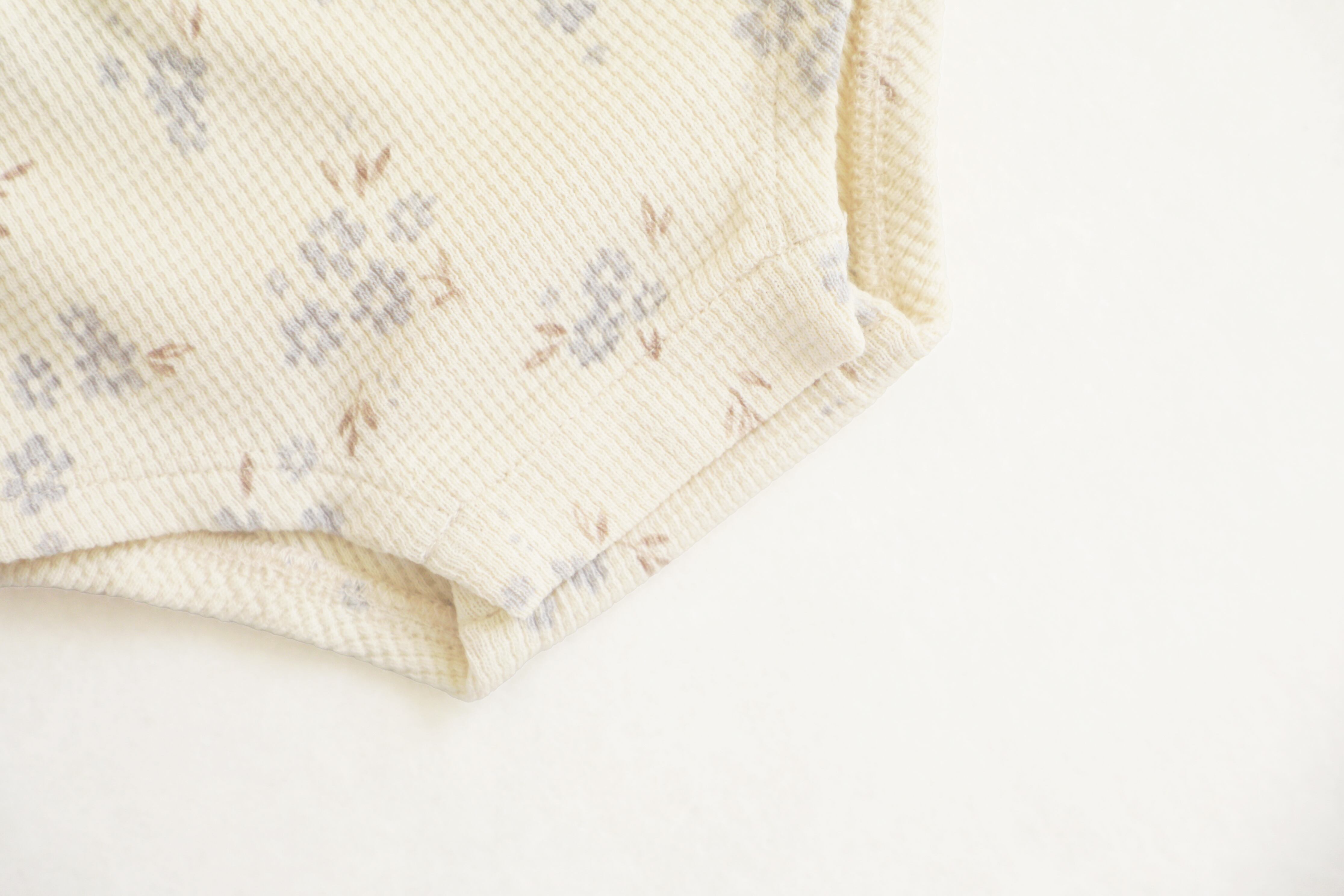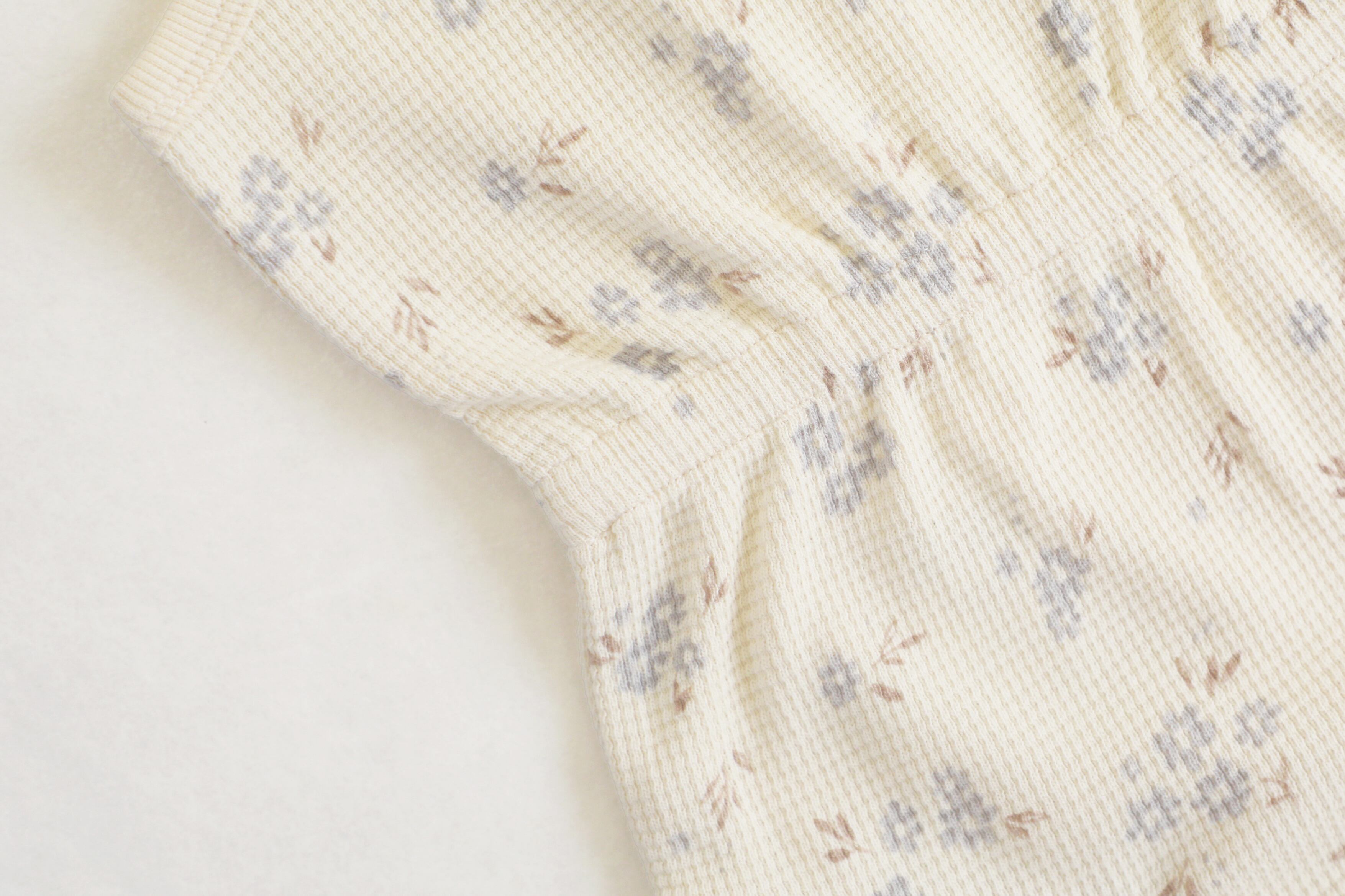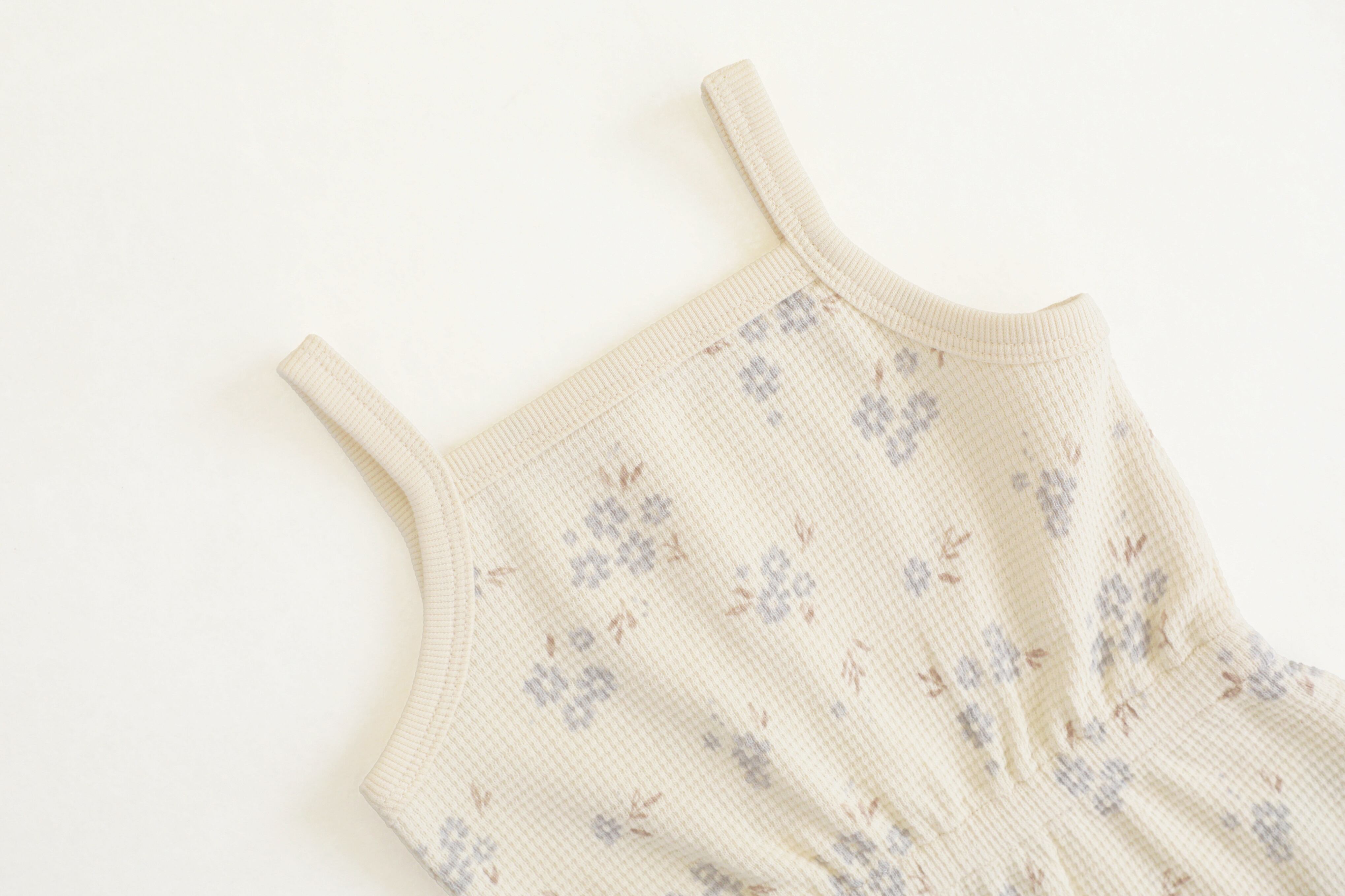 Quincy Mae(クインシーメイ) / 25ss WAFFLE CINCH ROMPER / BULE DITSY / 6-12M・12-18M・18-24M